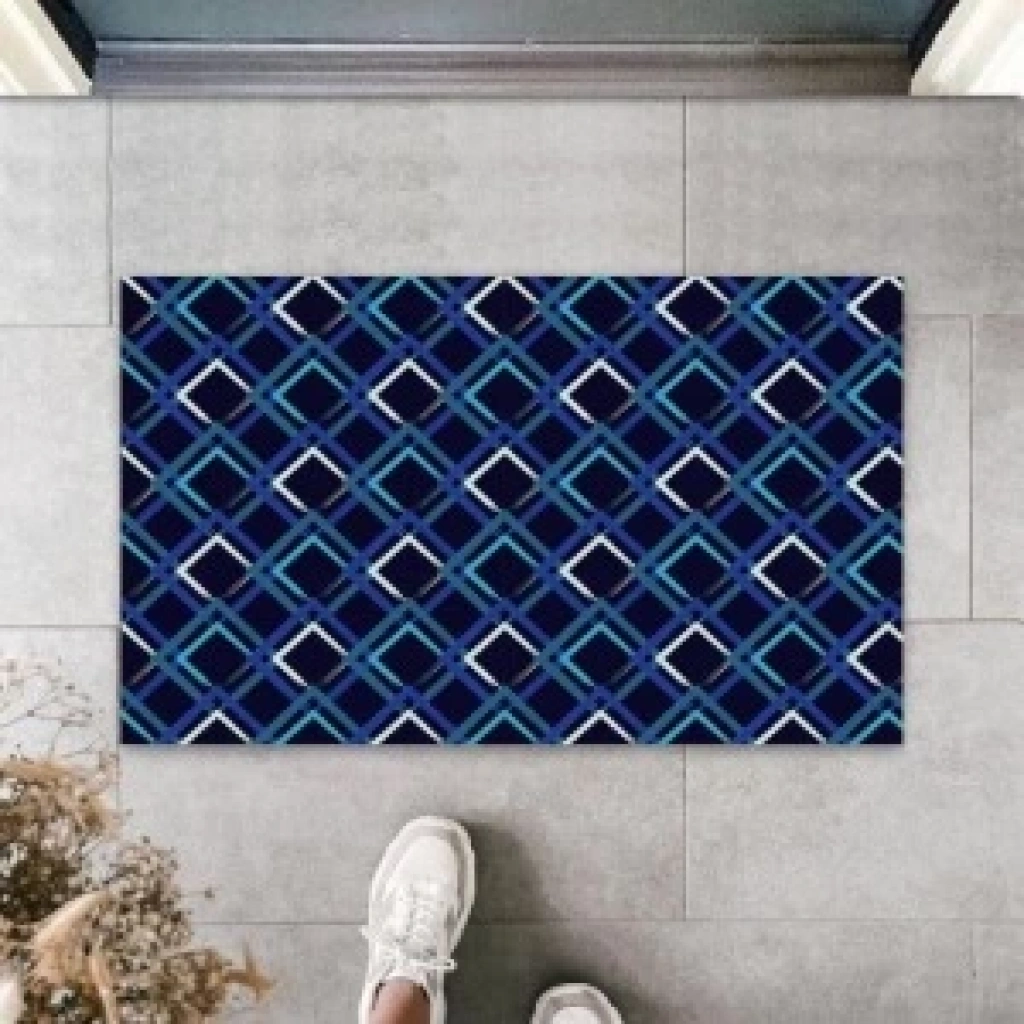 Koyu Mavi Kapı Önü Paspası Büyük Kareler Desen K-3231