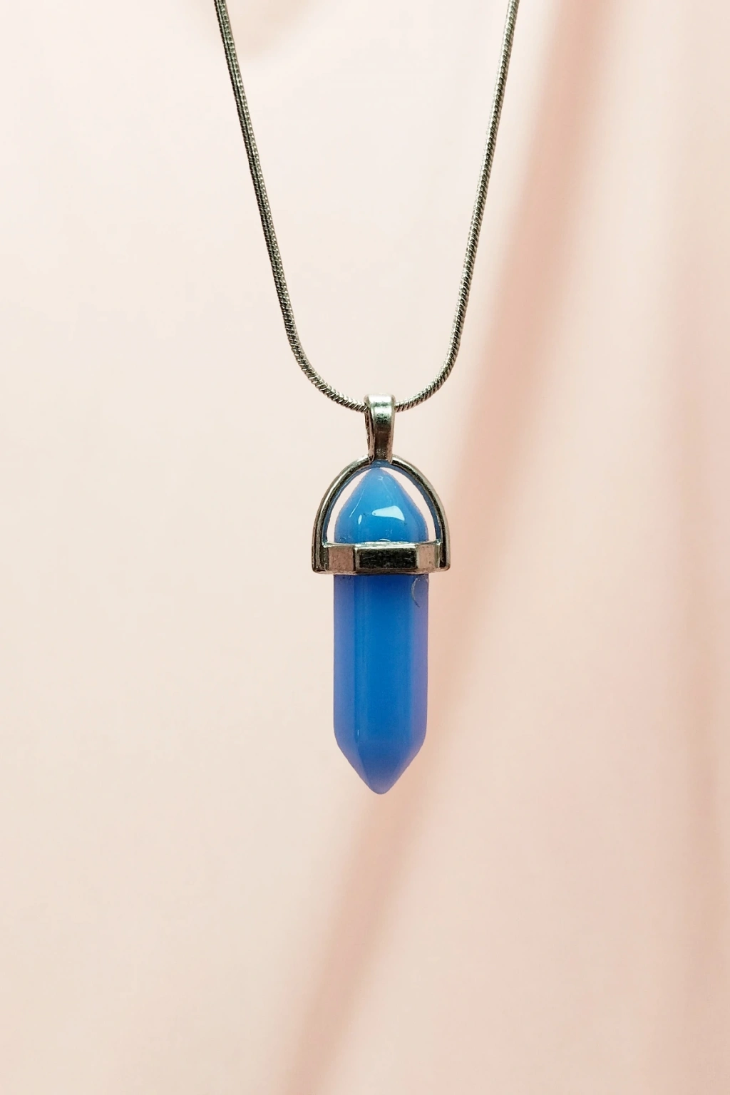Kalsedon Doğal Taşı Zincirli El Yapımı Kolye Uç: 1,5 cm Zincir: 20 cm Kutulu