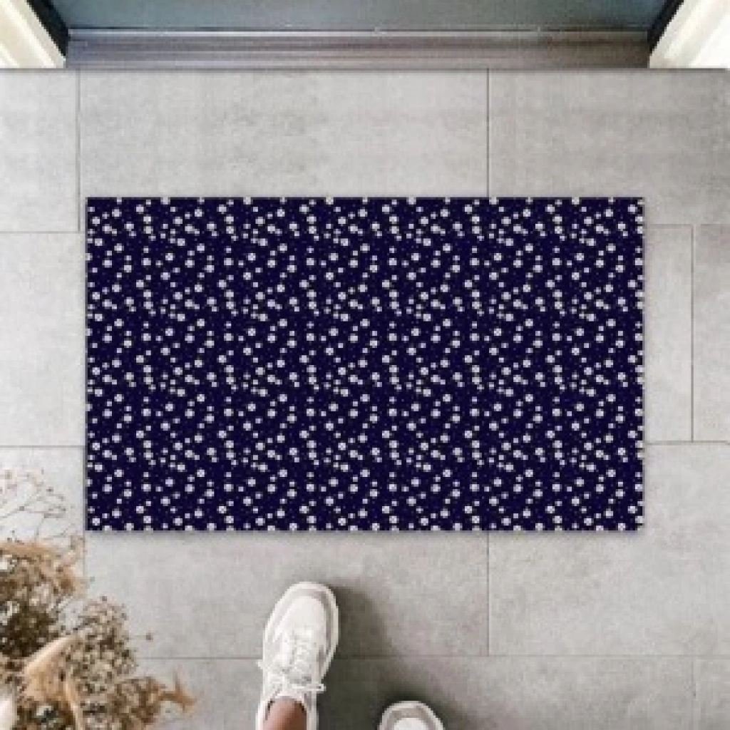 Lacivert Kapı Önü Paspası Çoklu Papatya Desen K-3222