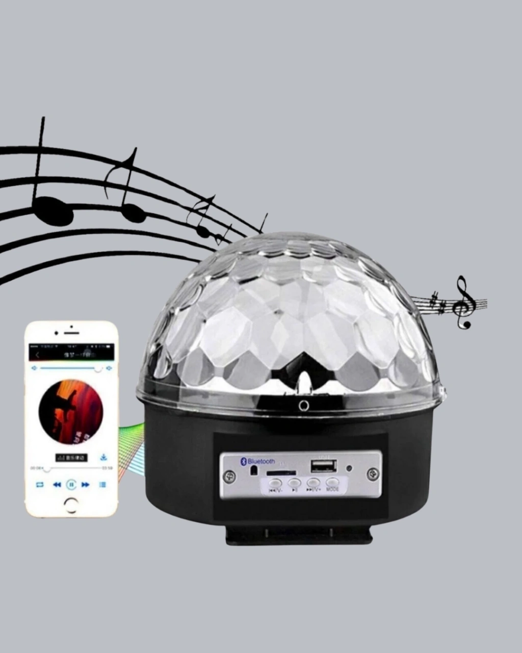 LED Disko Küresi Bluetooth Hoparlörlü Ritimle Senkronize Döner Işıklı