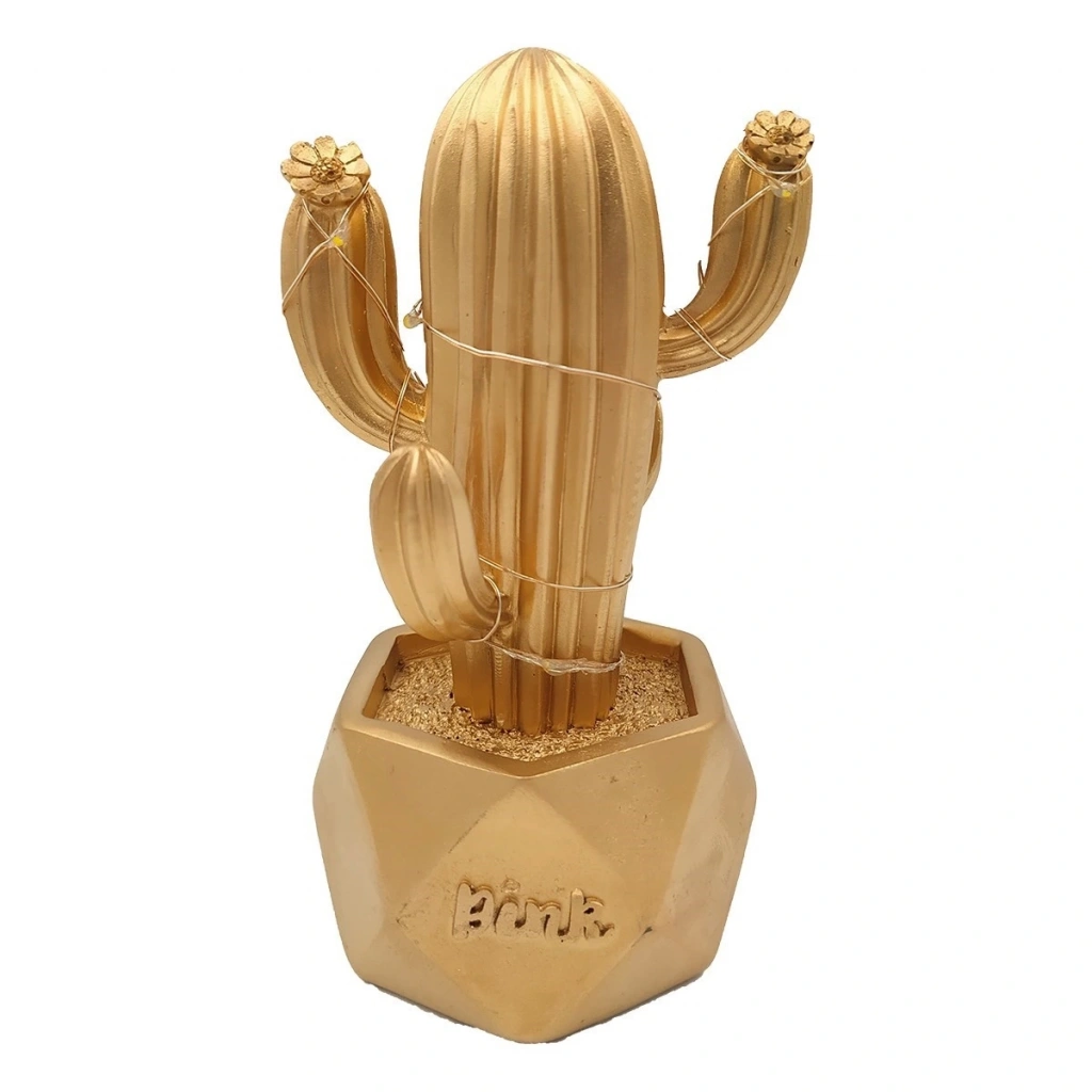 Led Işıklı Sevimli Kaktüs Dekoratif Masa Lambası Mini Biblo Gece Lambası-Gold