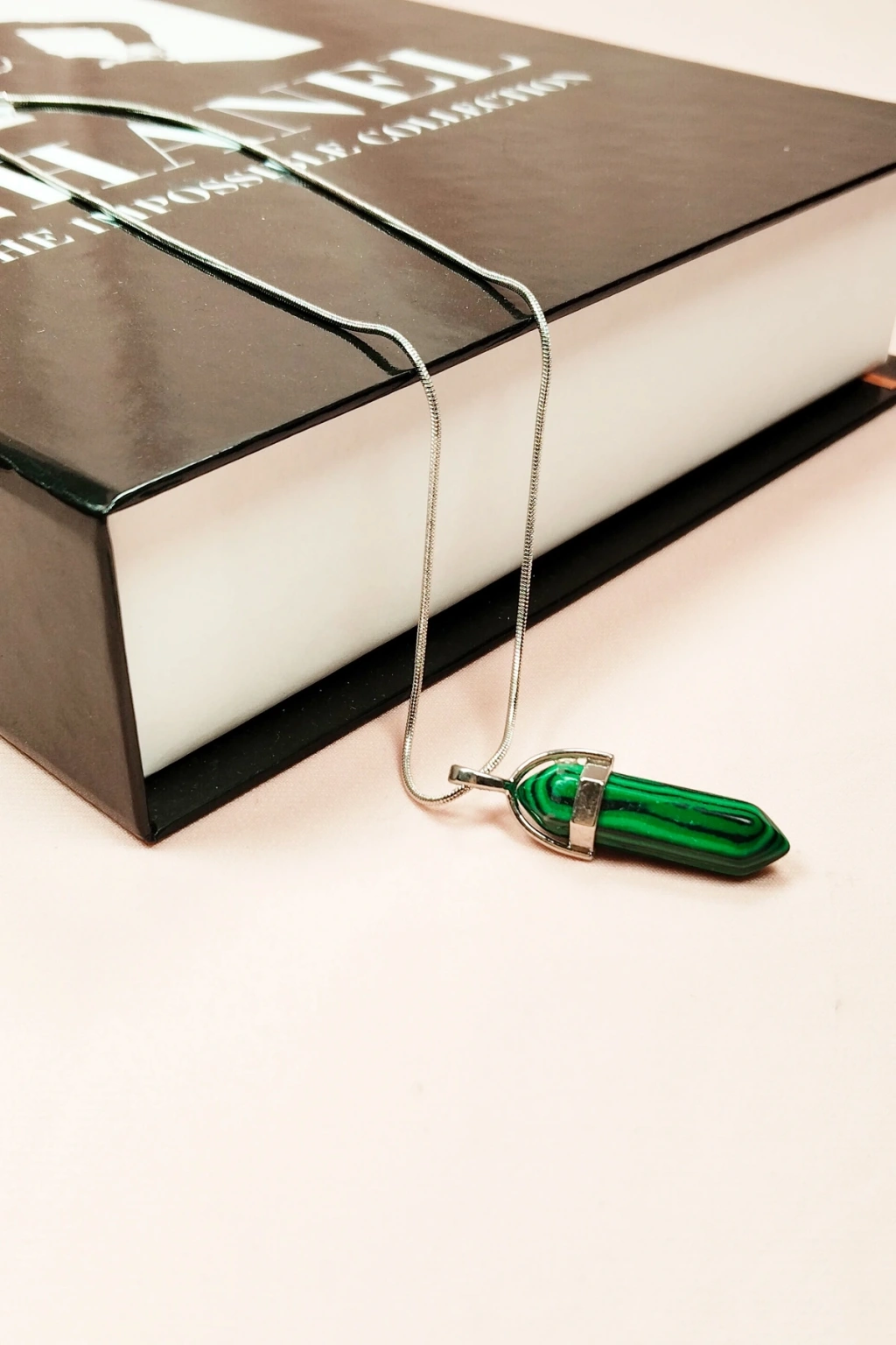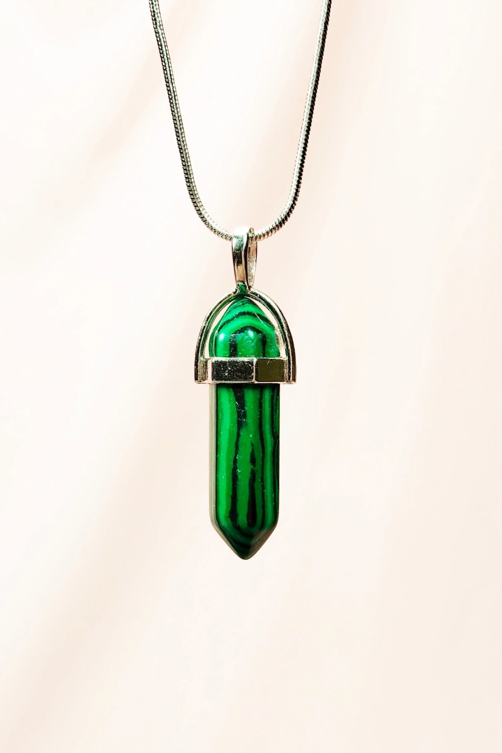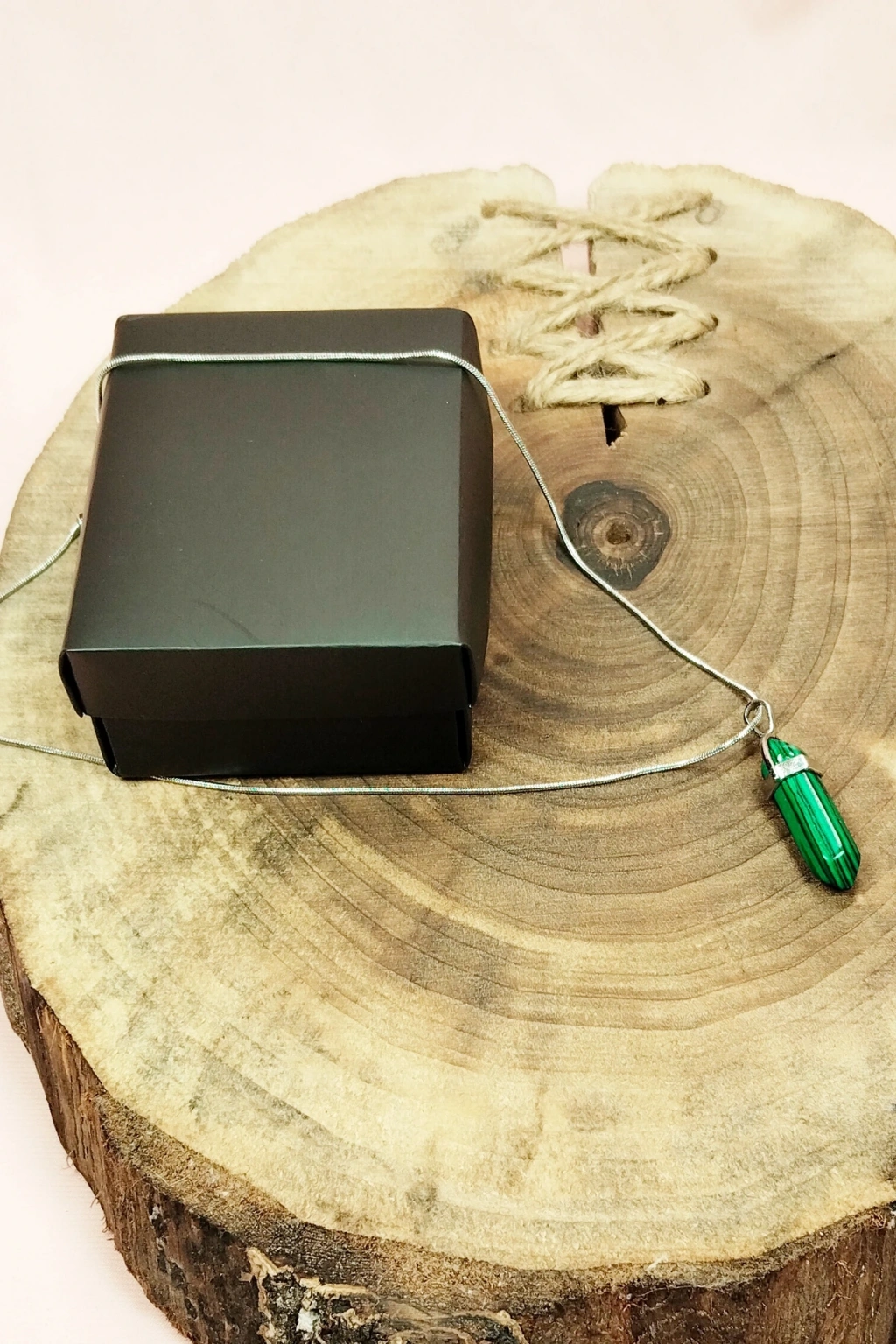 Malahit Doğal Taşı Zincirli El Yapımı Tasarımlı Kolye Uç: 3,5 cm Zincir: 20 cm Kutulu