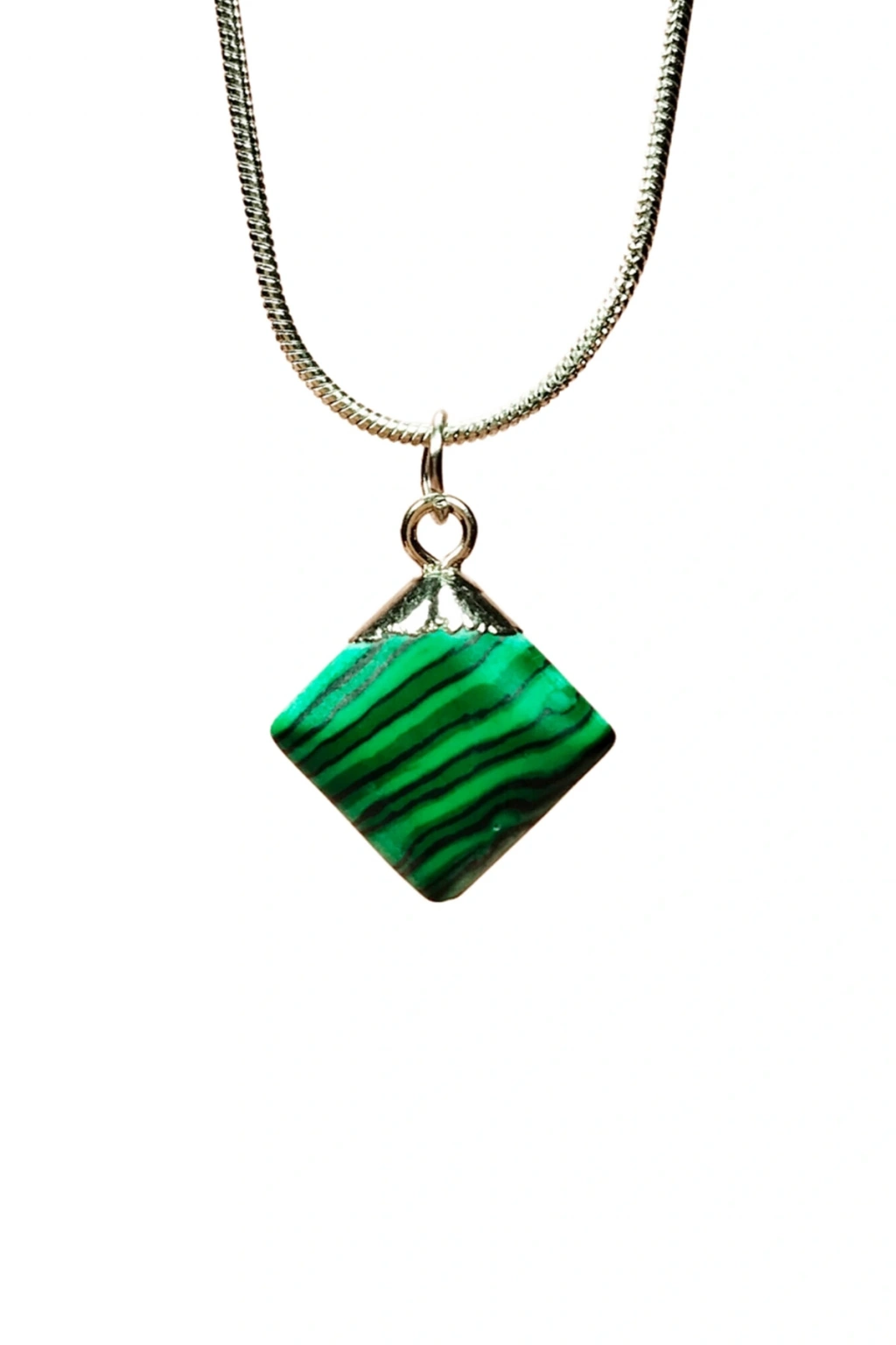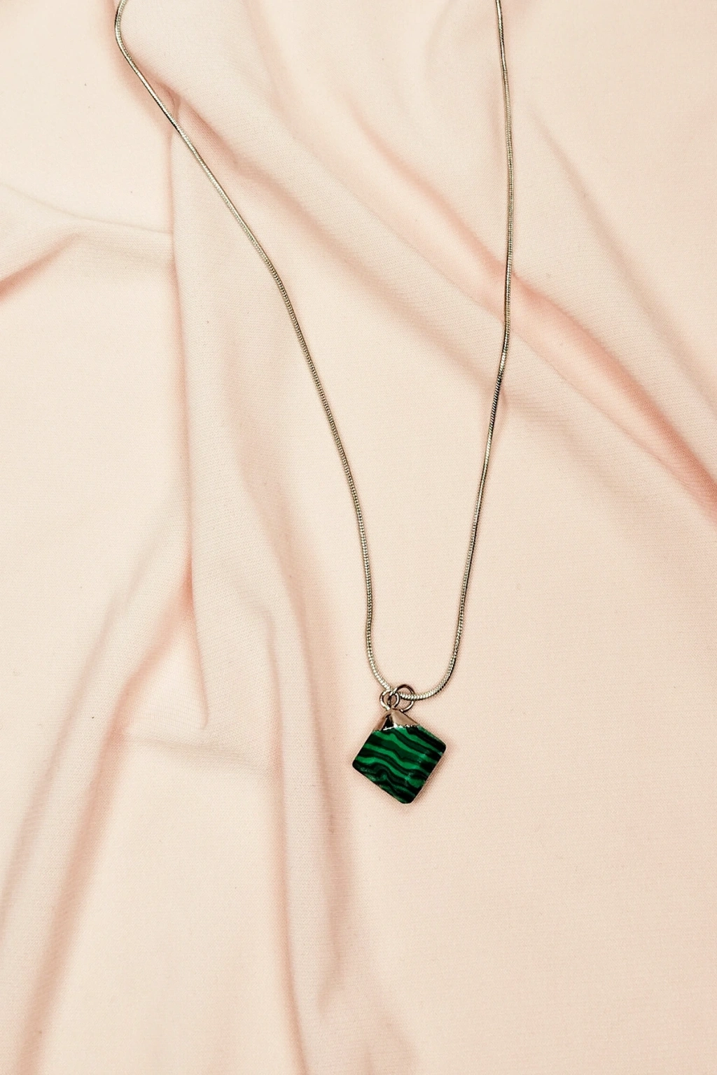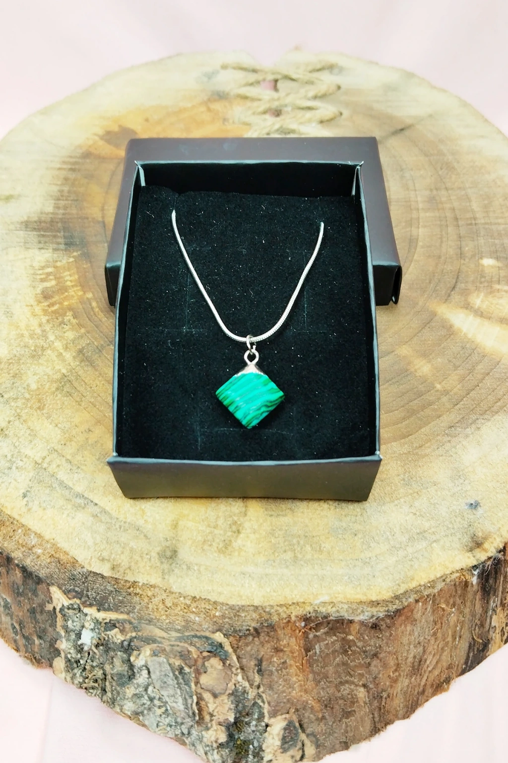 Malakit Doğal Taşı Zincirli El Yapımı Kolye Uç: 1,5 cm Zincir: 20 cm Kutulu