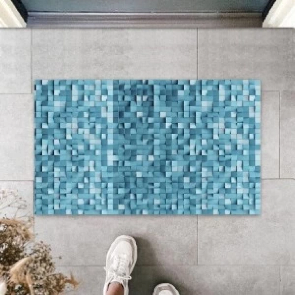 Mavi Kapı Önü Paspası Küçük Kareler Desen K-3207
