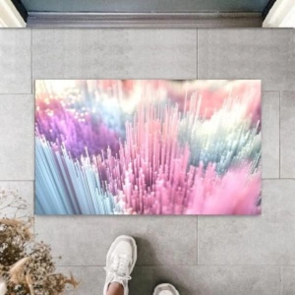 Pembe Kapı Önü Paspası Çoklu Çubuklar Desen K-3206