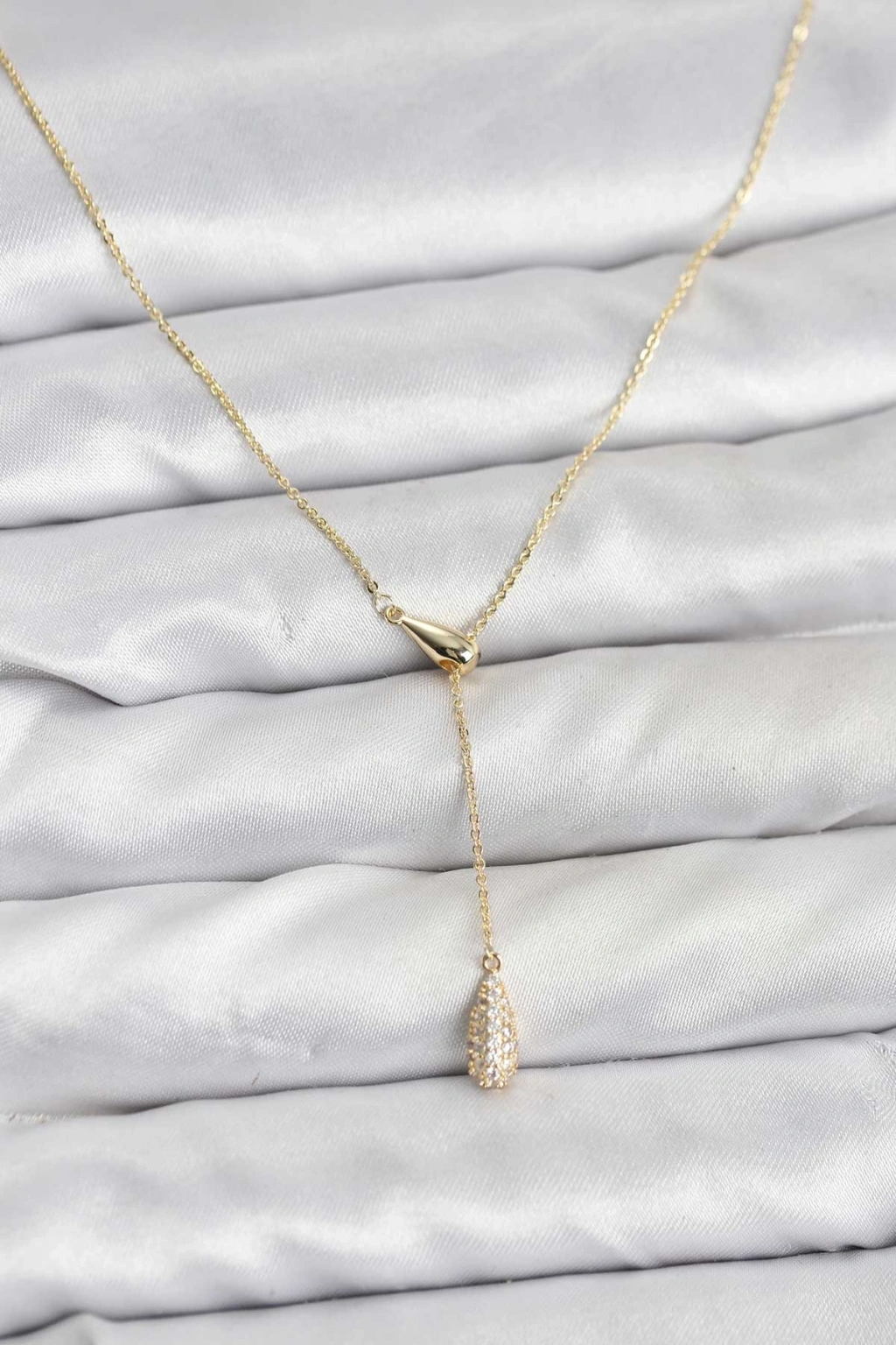 Pirinç Gold Renk Asansörlü Damla Model Kadın Kolye - TJ-BKO10799
