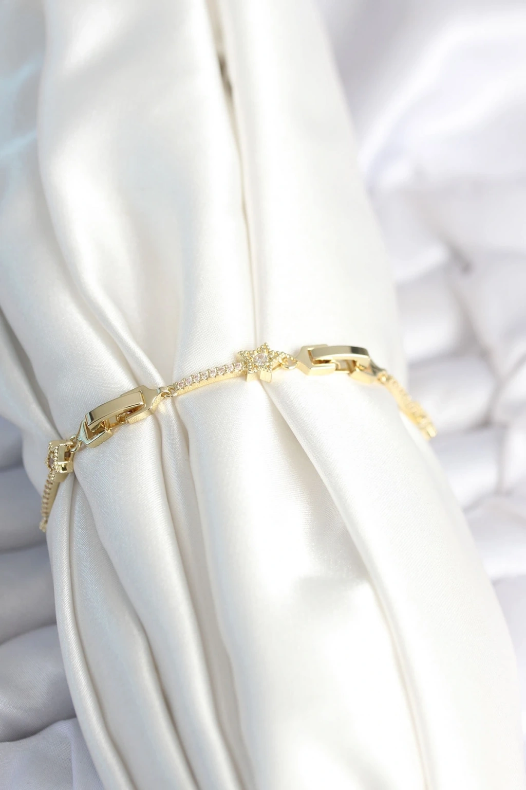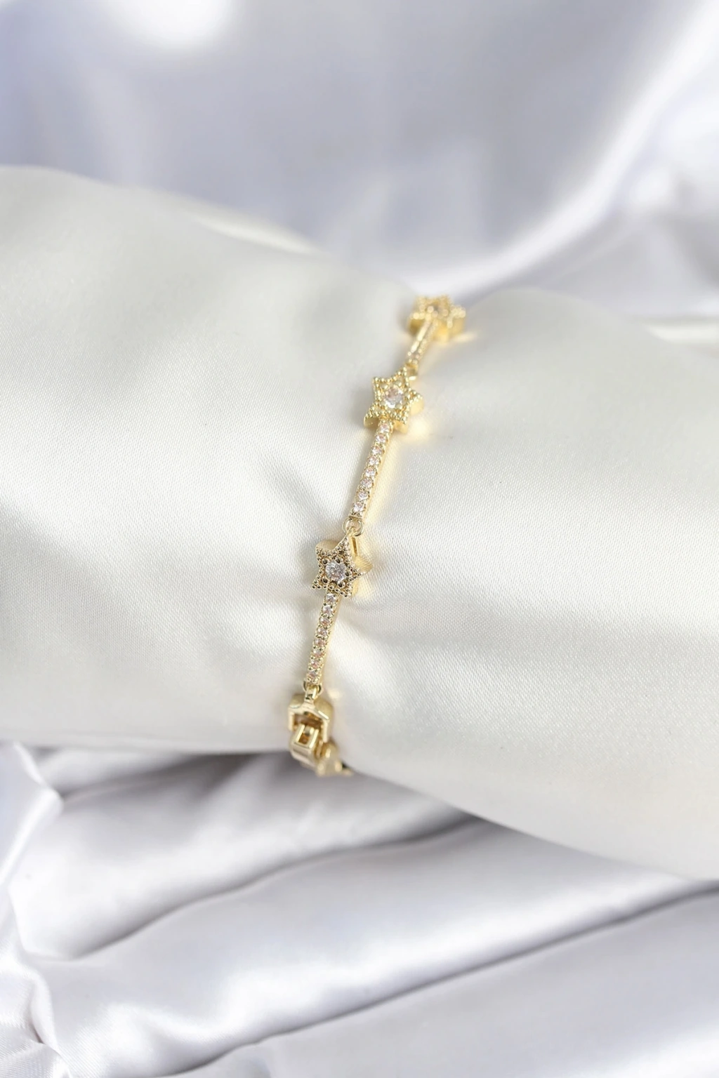Pirinç Gold Renk Halley Yıldız Model Kadın Bileklik
