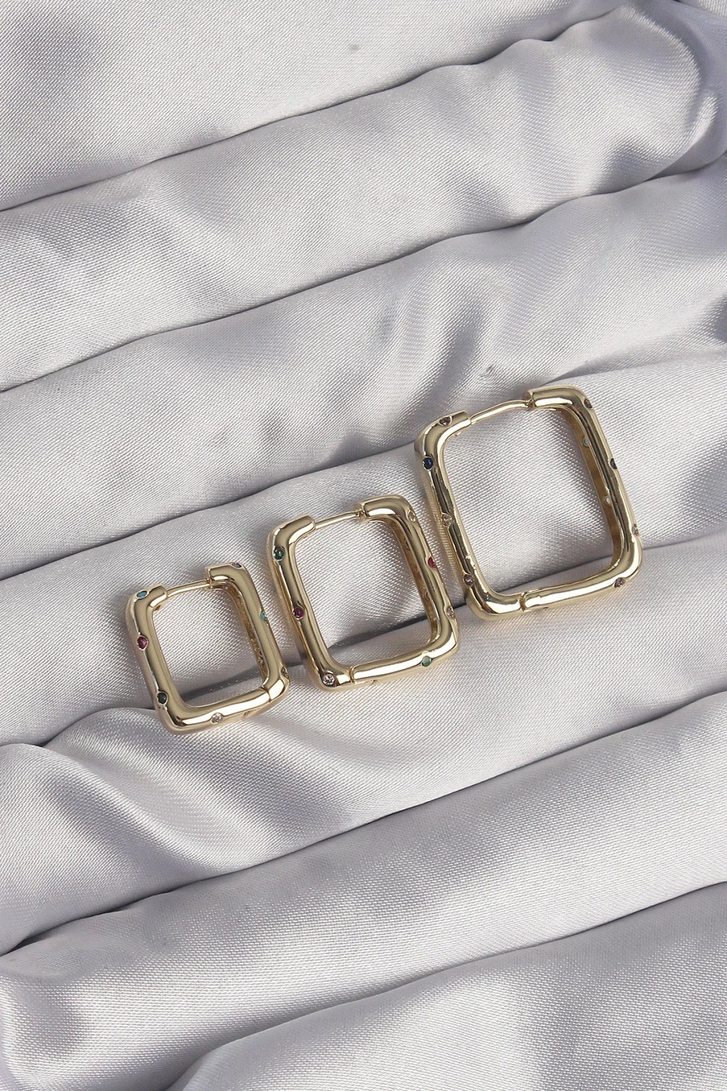 Pirinç Gold Renk Renkli Zirkon Taşlı Kare Model Küpe Seti