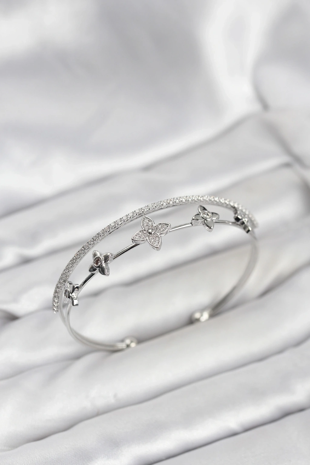 Pirinç Gümüş Renk Çiçek Model Kadın Bileklik