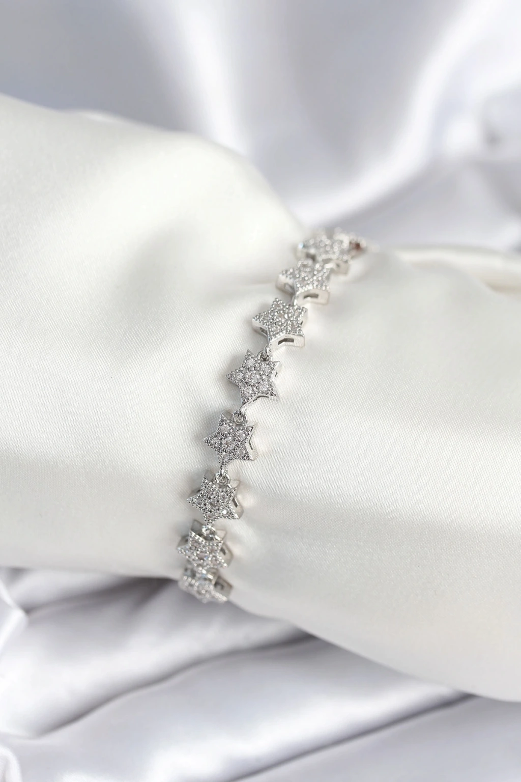 Pirinç Gümüş Renk Yıldız Model Kadın Bileklik