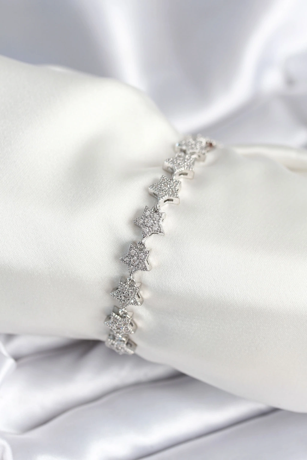 Pirinç Gümüş Renk Yıldız Model Kadın Bileklik - TJ-BB7979