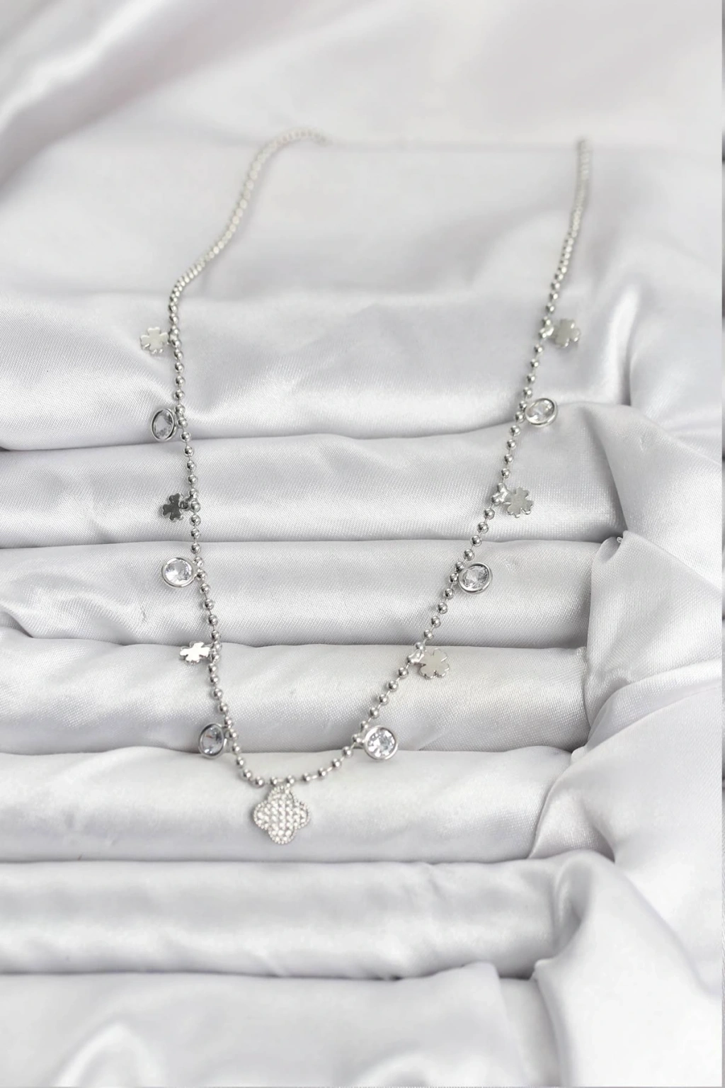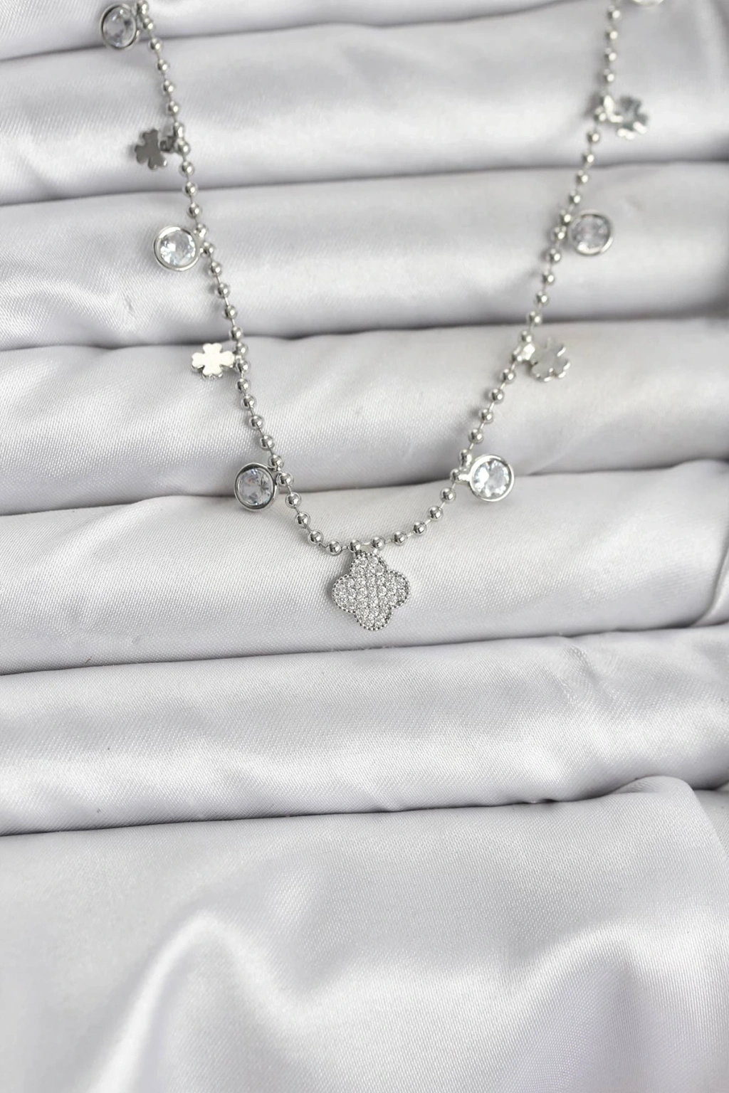 Pirinç Gümüş Renk Yonca Model Kadın Kolye