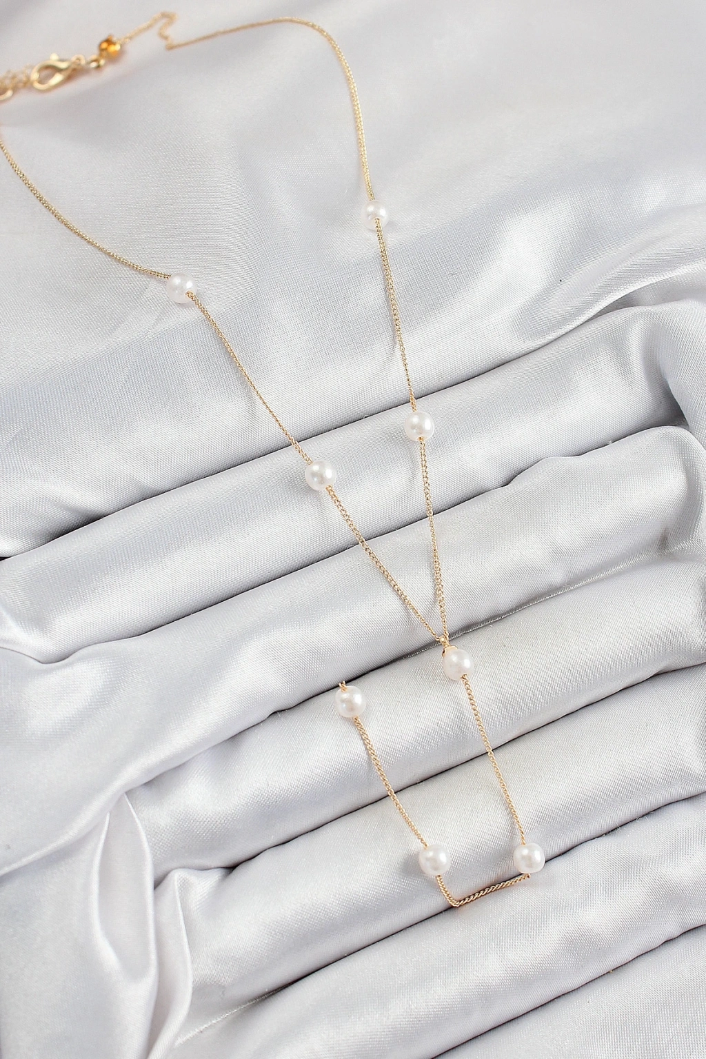 Pirinç İnci Figürlü Y Model Gold Renk Kadın Kolye