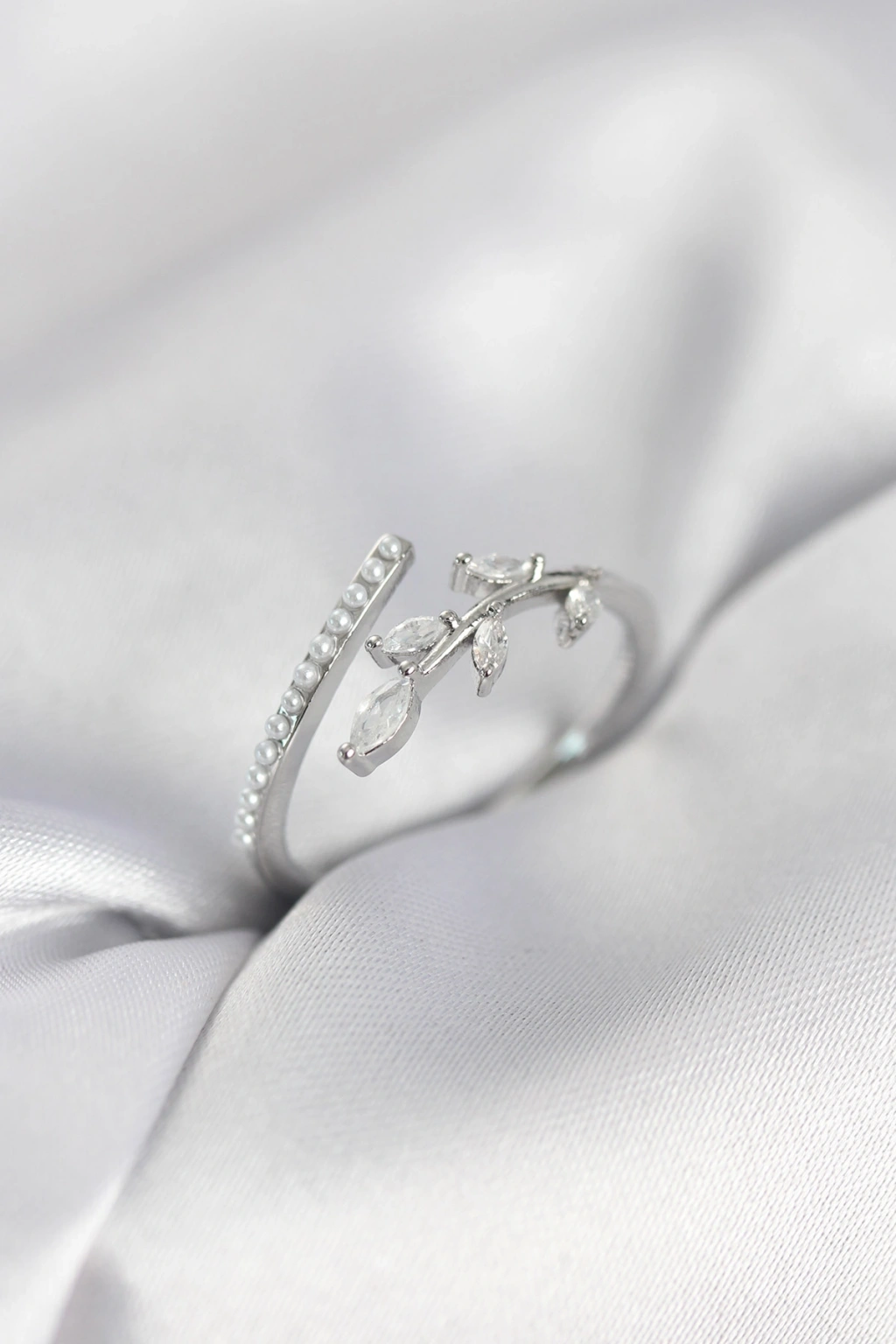 Sıralı Çiçek Model Gümüş Renk Zirkon Taşlı Kadın Yüzük