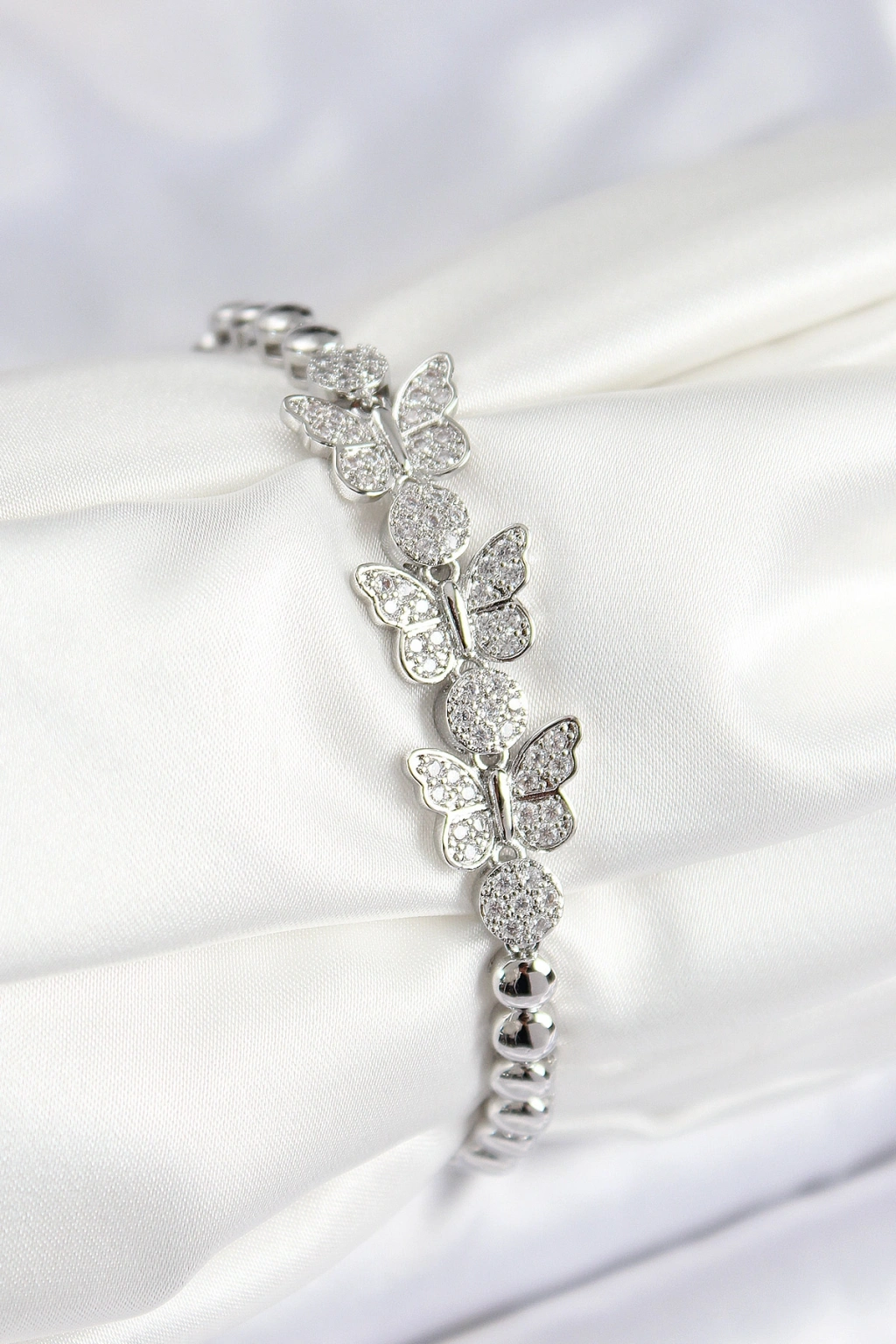 Pirinç Zirkon Taşlı Model Gümüş Renk Kadın Bileklik - TJ-BB7542
