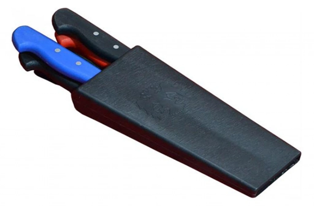 Plastik Kütüklüğü 4'lü - Kırmızı, Plastik Çanta; bıçakları düzenli bir şekilde saklamak ve taşımak için pratik, dayanıklı ve estetik bir çözüm sunar. Hem mutfakta düzeni sağlamak hem de taşınabilirlik açısından avantaj sağlar.