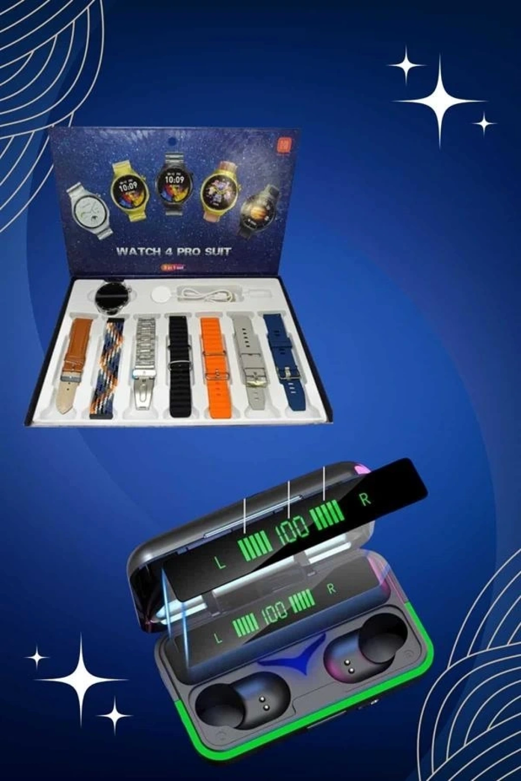 Powerbank Bluetooth Kulaklık Ve Akıllı Saat 7 Kordonlu Metal Kordon Plastik Kordon