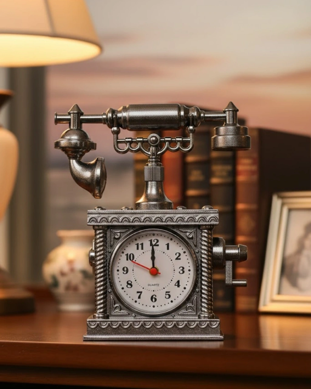 Vintage Telefon Tasarımlı Masa Saati ve Çalar Saat Dekoratif Model