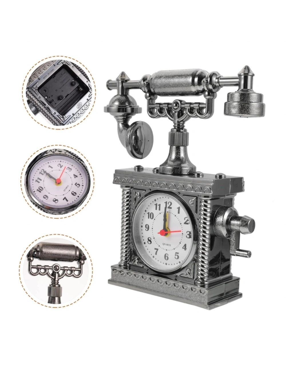 Nostaljik Telefon Tasarımlı Masa Saati Yüksek Sesli Alarm
