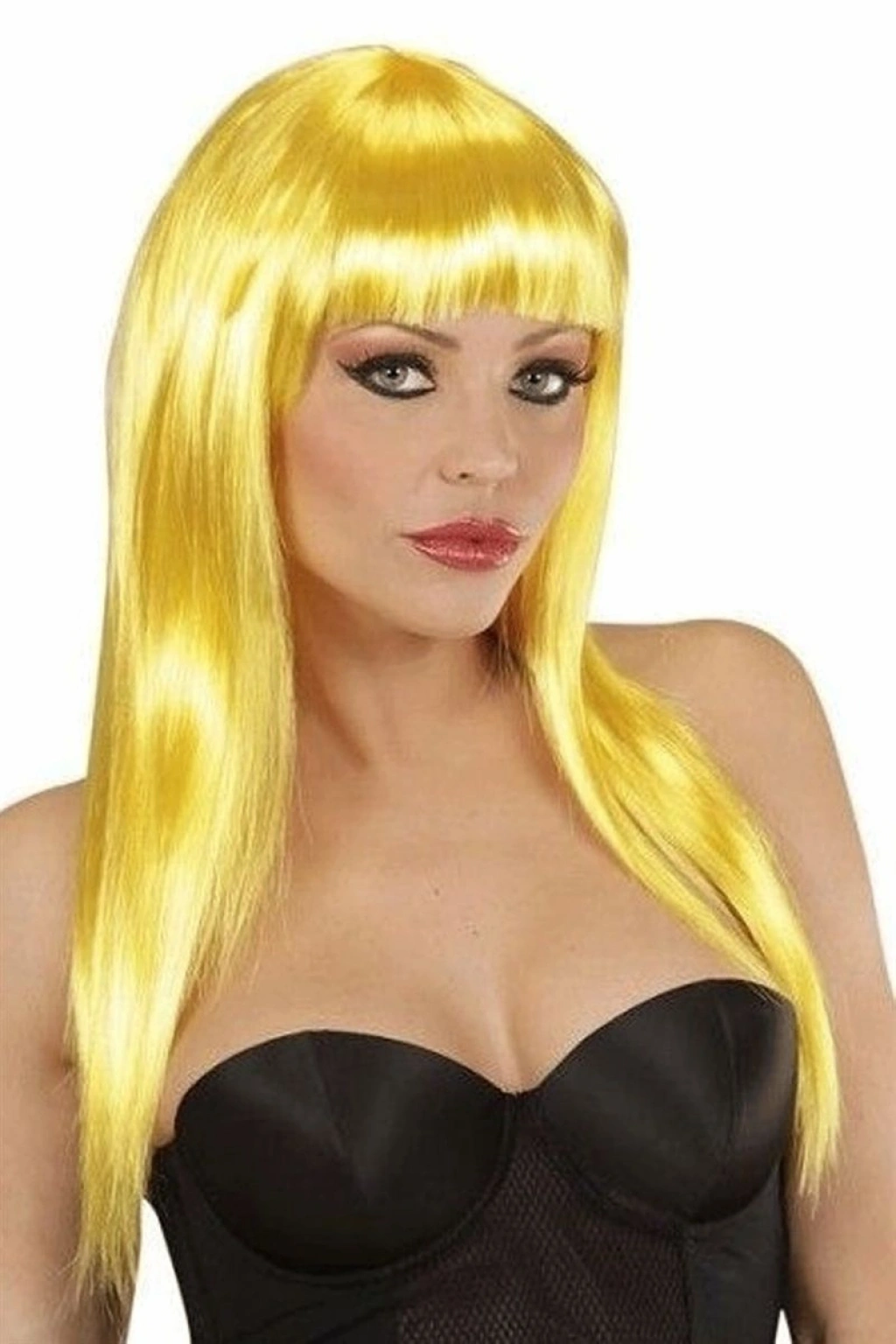 Altın Renk Düz Kesim İçi Astarlı Uzun Parti Peruğu Takma Saç