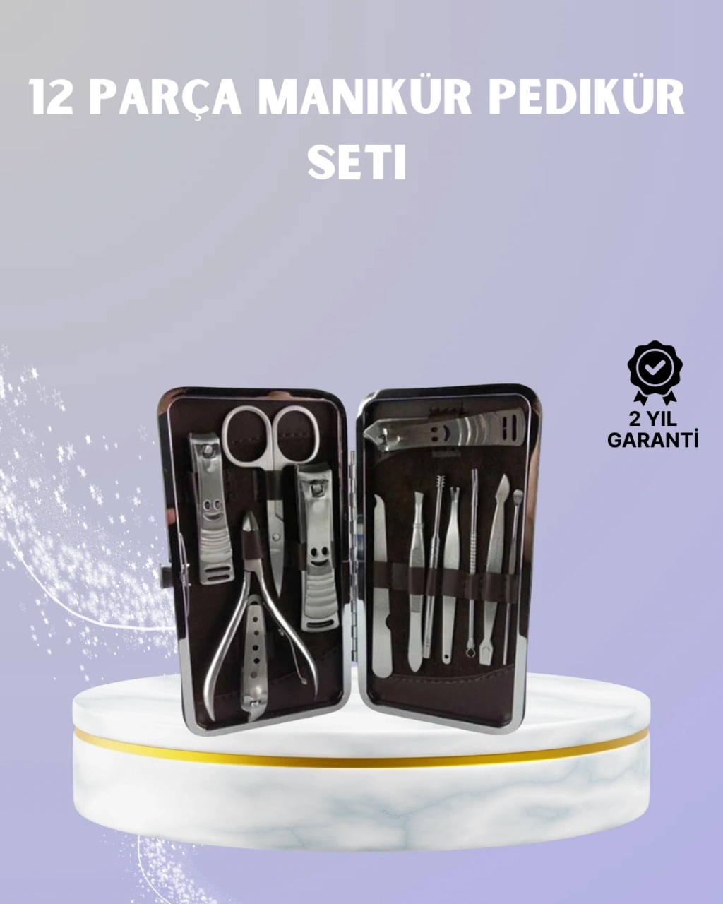 12 Parça Manikür Pedikür Seti Özel Deri Çanta El Ayak Bakımı Akne ve Sivilce Temizleme