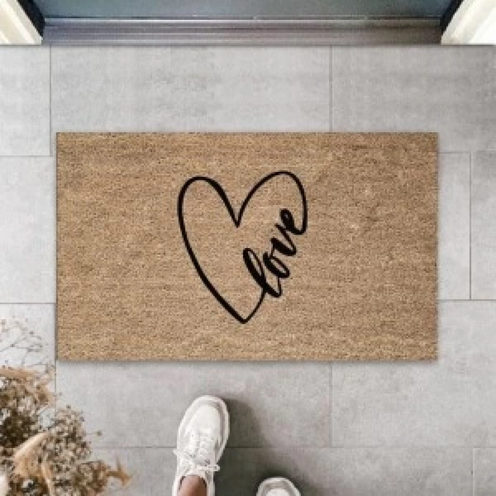 Kapı Önü Paspası Kişiye Özel Yazı Yazılır Koko Model Kalp Çiçek Desenli Pk-1515