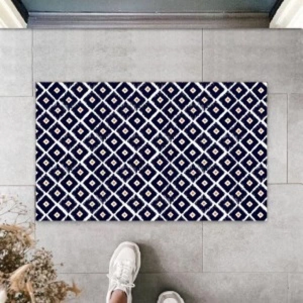 Siyah Kapı Önü Paspası Minik Kare Desen K-3213