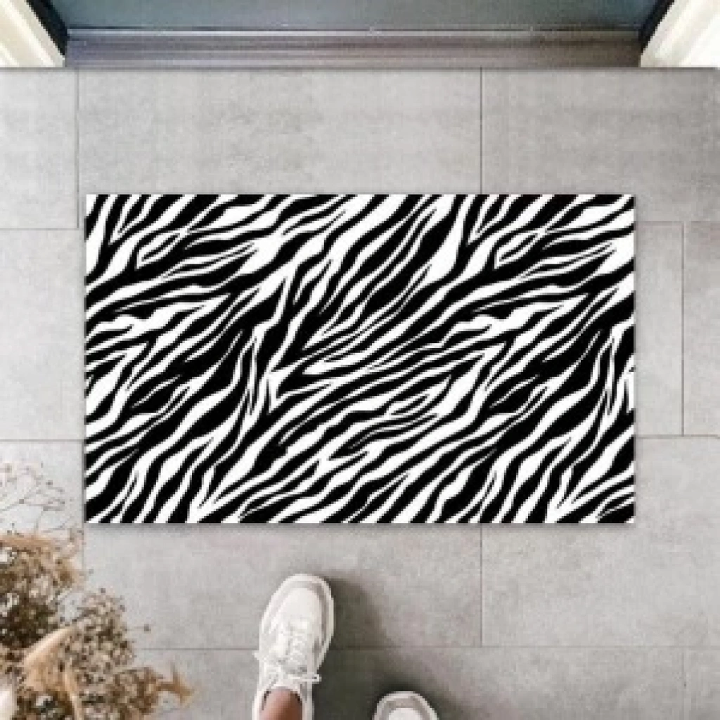 Siyah Kapı Önü Paspası Zebra Desen K-3253