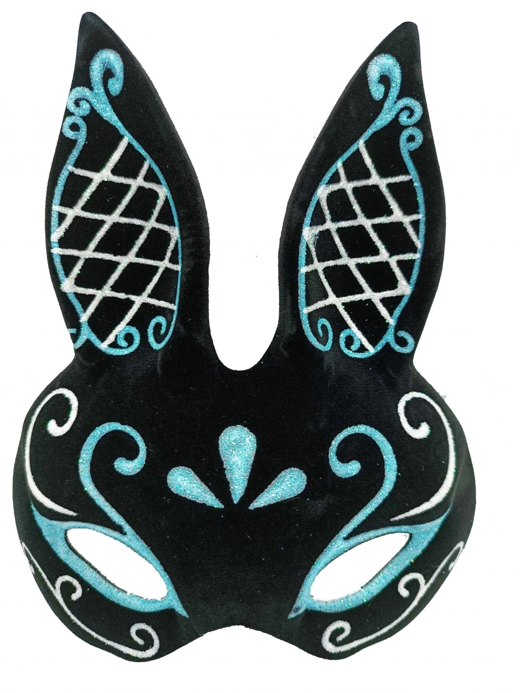 Siyah süet kaplama, mi beyaz simli tşan maskemizi hemen satın alın ve siz de büyüleyici bir görünüm elde edin