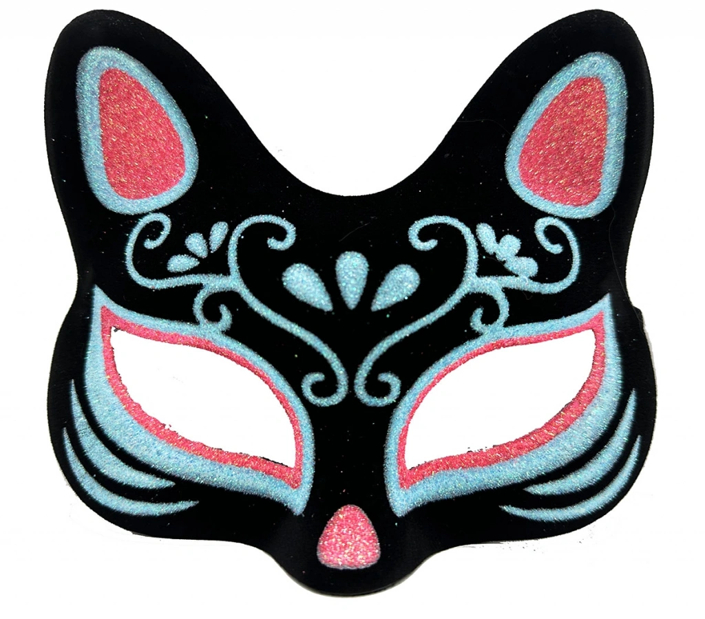 Kostüm maskelerinin en sevimli ve eğlenceli maskelerinden biri olan Siyah Renk Mavi Kırmızı Simli Süet Kaplama Kedi Maskesi ile göz kamaştırın!