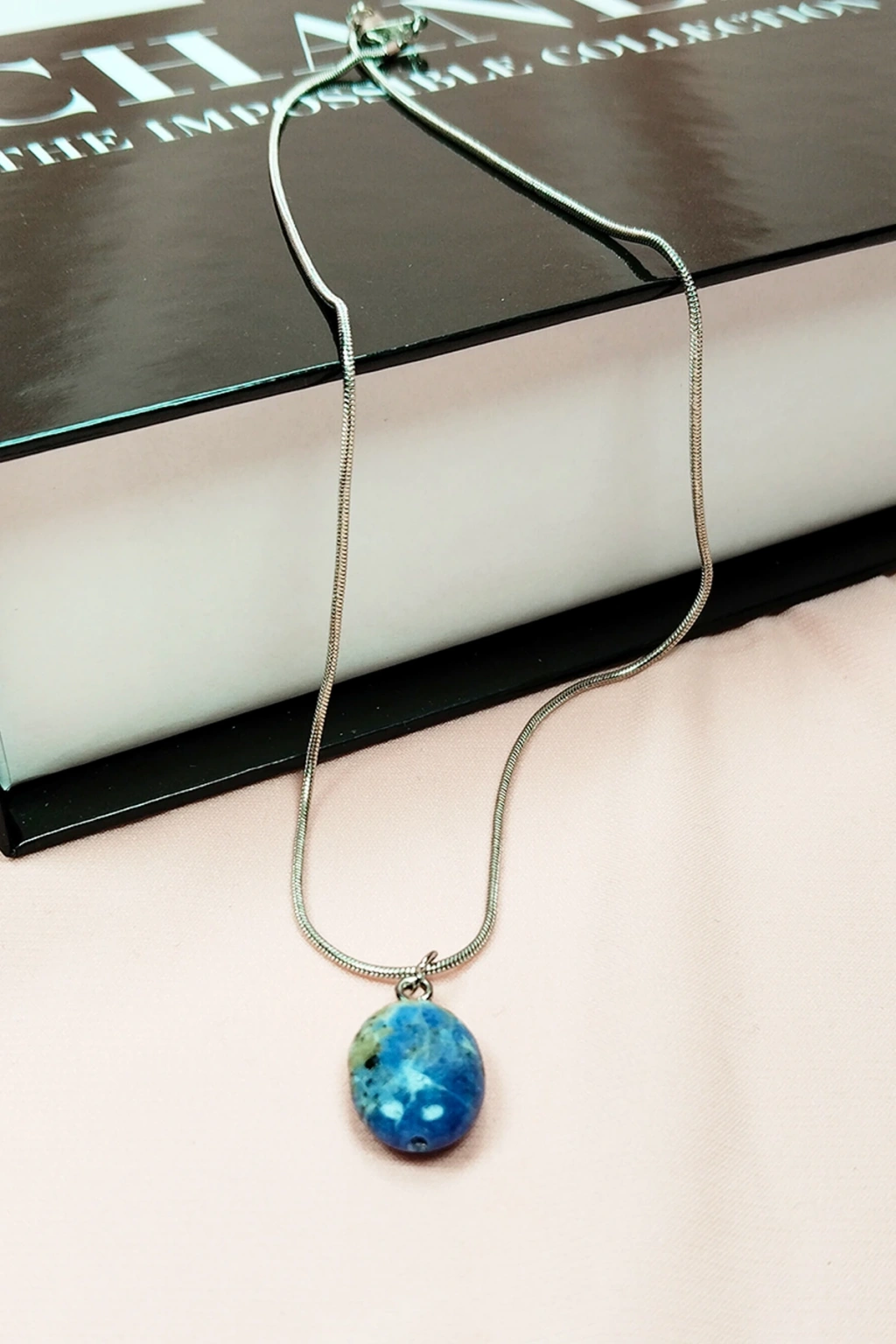 Kalsedon Doğal Taşı Zincirli El Yapımı Kolye Uç: 1,5 cm Zincir: 20 cm Kutulu