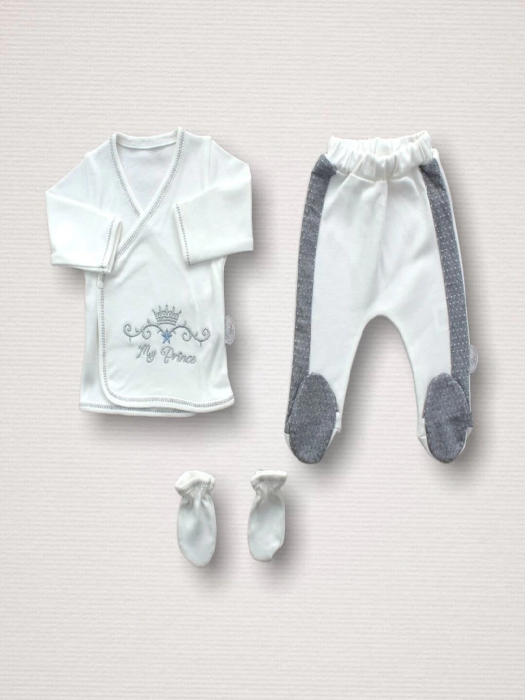 Süper Prens Nakışlı %100 Cotton Antibakteriyel 10lu Zıbın Takımı Hastane Çıkışı