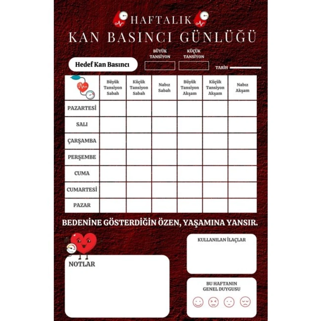Tansiyon Ölçüm Takip Çizelgesi Defteri A Kalite Özel Tasarım 6 Aylık A6 Boyut