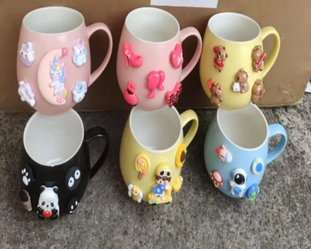 Kabartmalı Motifli Tasarım Çiçekler Seramik Kupa Bardak