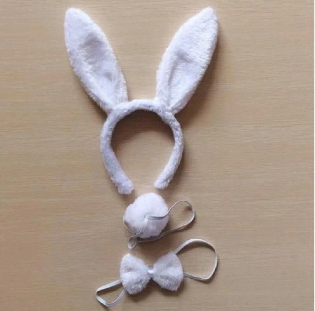 Tşan Kostüm Seti Taç Papyon Kuyruk Beyaz Renk