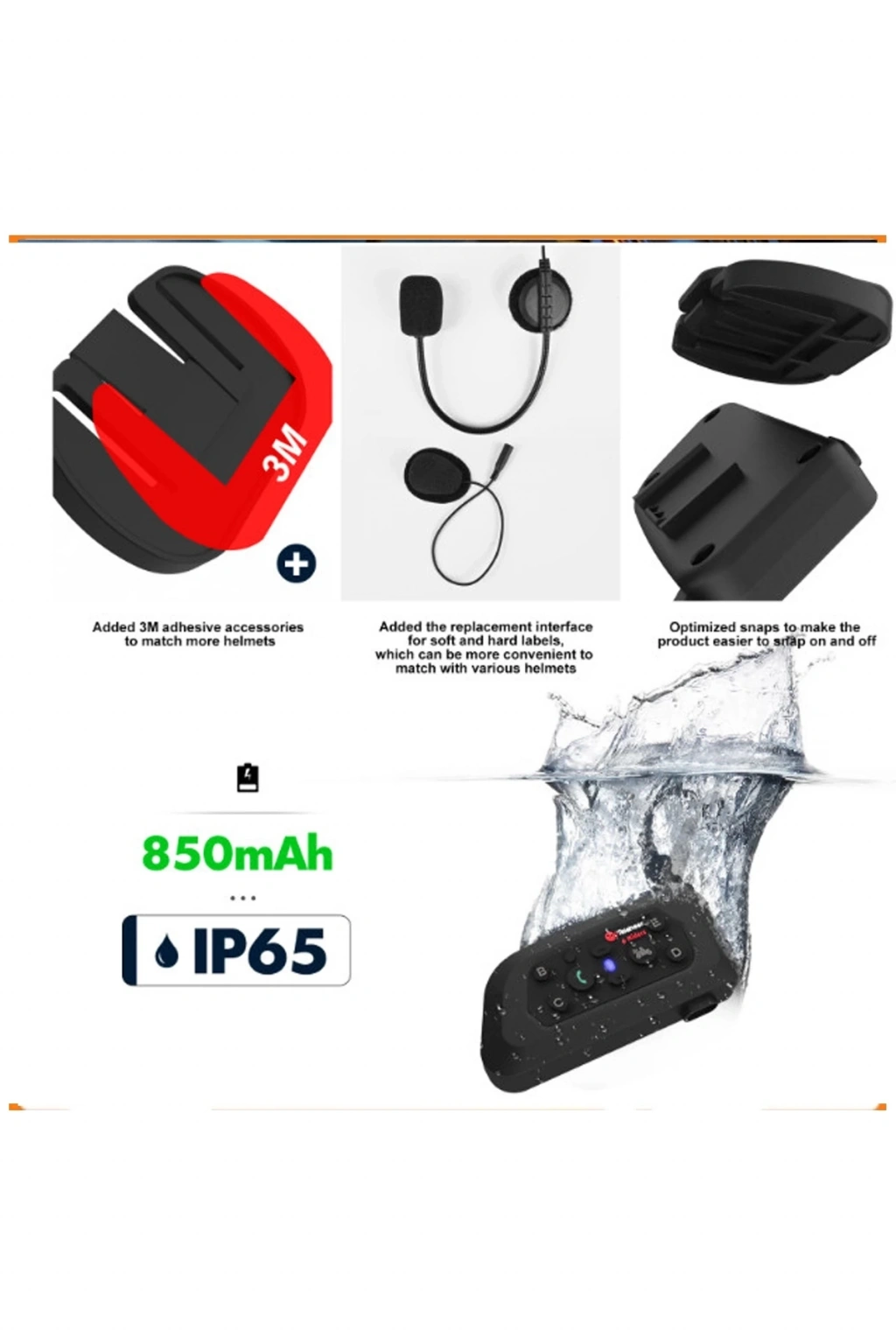 Fonksiyonlar: 1. 1200 metreye kadar konuşma aralığına sahip Bluetooth Motosiklet kaskı interkomu 2. Büyük kapasiteli pil, 850 mah pil konuşma süresini ve bekleme süresini uzatır 3.Tam Çift Yönlü Kablosuz Bluetooth Handsfree interkom iletişimi. Diğer 5 Sürücüyü Eşleştirebilir ve Herhangi 2'si Arasında Konuşma Aynı anda 4. Rüzgar gürültüsü DSP iptali sayesinde, 120 km/saat'e kadar hızlarda net bir şekilde duyabilirsiniz 5. Yüksek kaliteli piller, tam 3 saat şarj ve 8 saate kadar konuşma süresi 6. Stereo Bluetooth Kulaklık ile GPS'ten stereo müzik/Sesli nigasyonu destekler, Aramayı otomatik olarak yanıtlar. 7. Ultrasonik entegre kalıplama, Daha iyi su direnci, her türlü ha koşulunda kullanılabilir. 8. Eller serbest iletişim. diğer 5 kişiyle eşleşebilirsiniz. 9. Motosiklet kaskı için uygun (Tam yüz/Yarım yüz) 10. Bir futbol maçı için hakem kulaklığı ile iyi çalışır (hakem grubu oluşturmak için 3-4 )