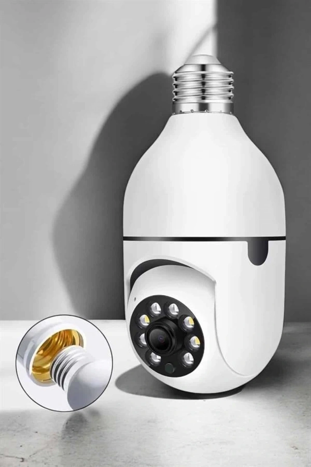 Wifi Kamera Duylu Ampul Görünümlü 360 Derece Dönebilen Ev Kamerası