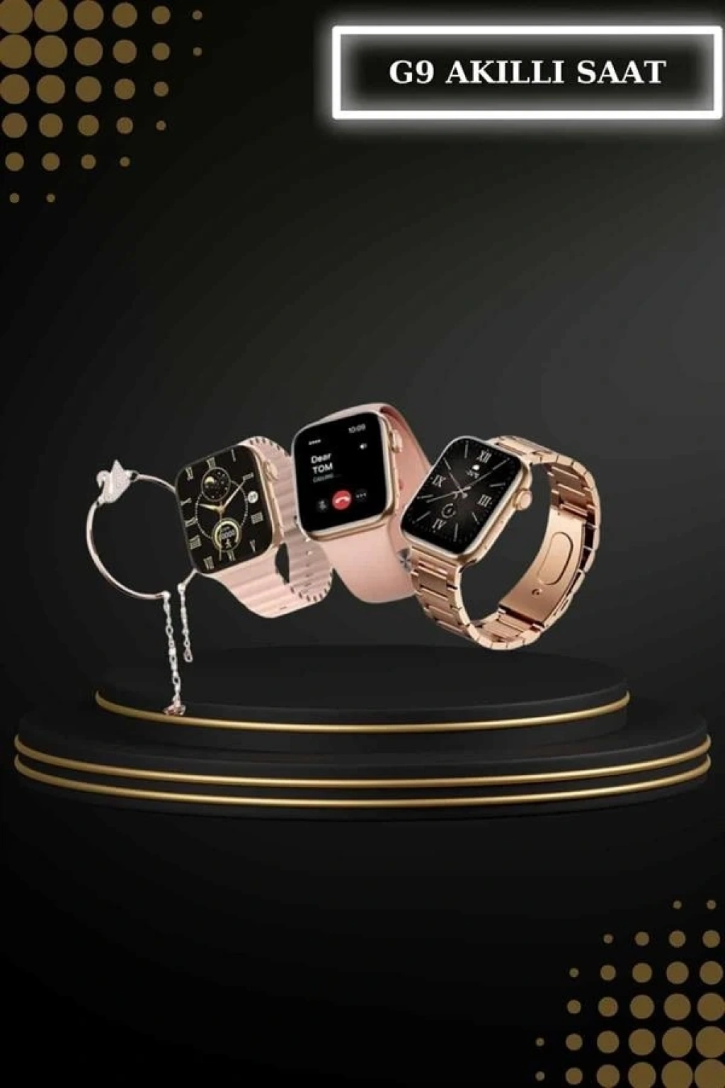 Wireless Şarjlı Pembe Akıllı Saat ve Kablosuz Bluetooth Kulaklık Dokunmatik Kontrol