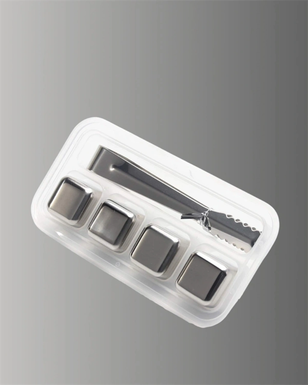 Paslanmaz Çelikten Üretilmiş Metal Buz Küpü Seti ve Buz Klipsi