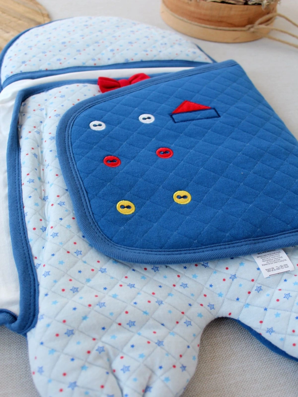 Yenidoğan Kulaklı Şapkalı Düğme Detaylı Fiyonklu Bebek Battaniyesi Kundak