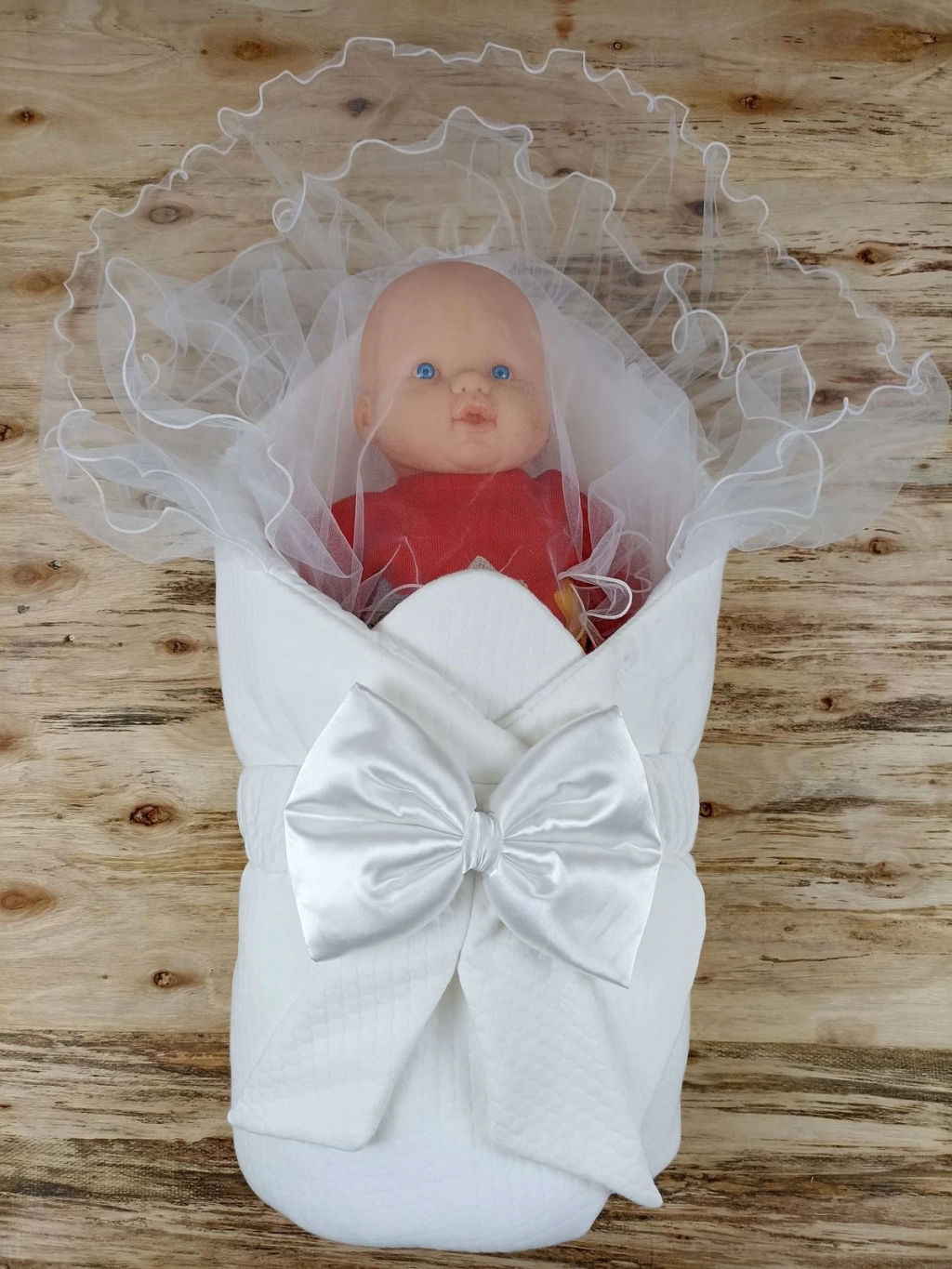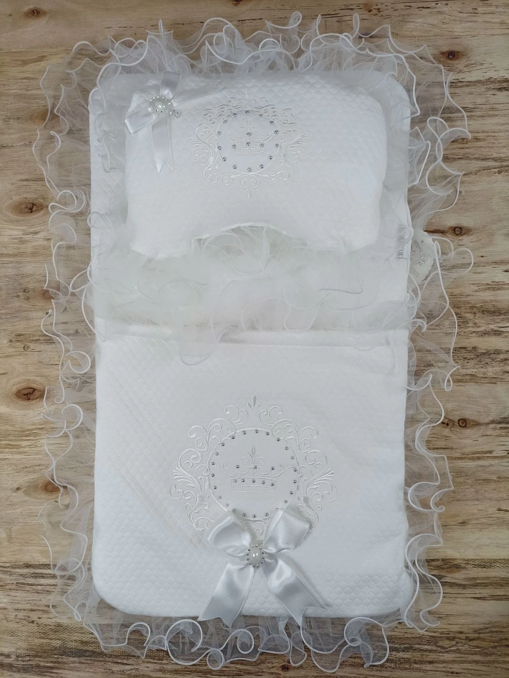 Yenidoğan Piramit Desenli Güpür İşlemeli Bebek Battaniyesi Kundak