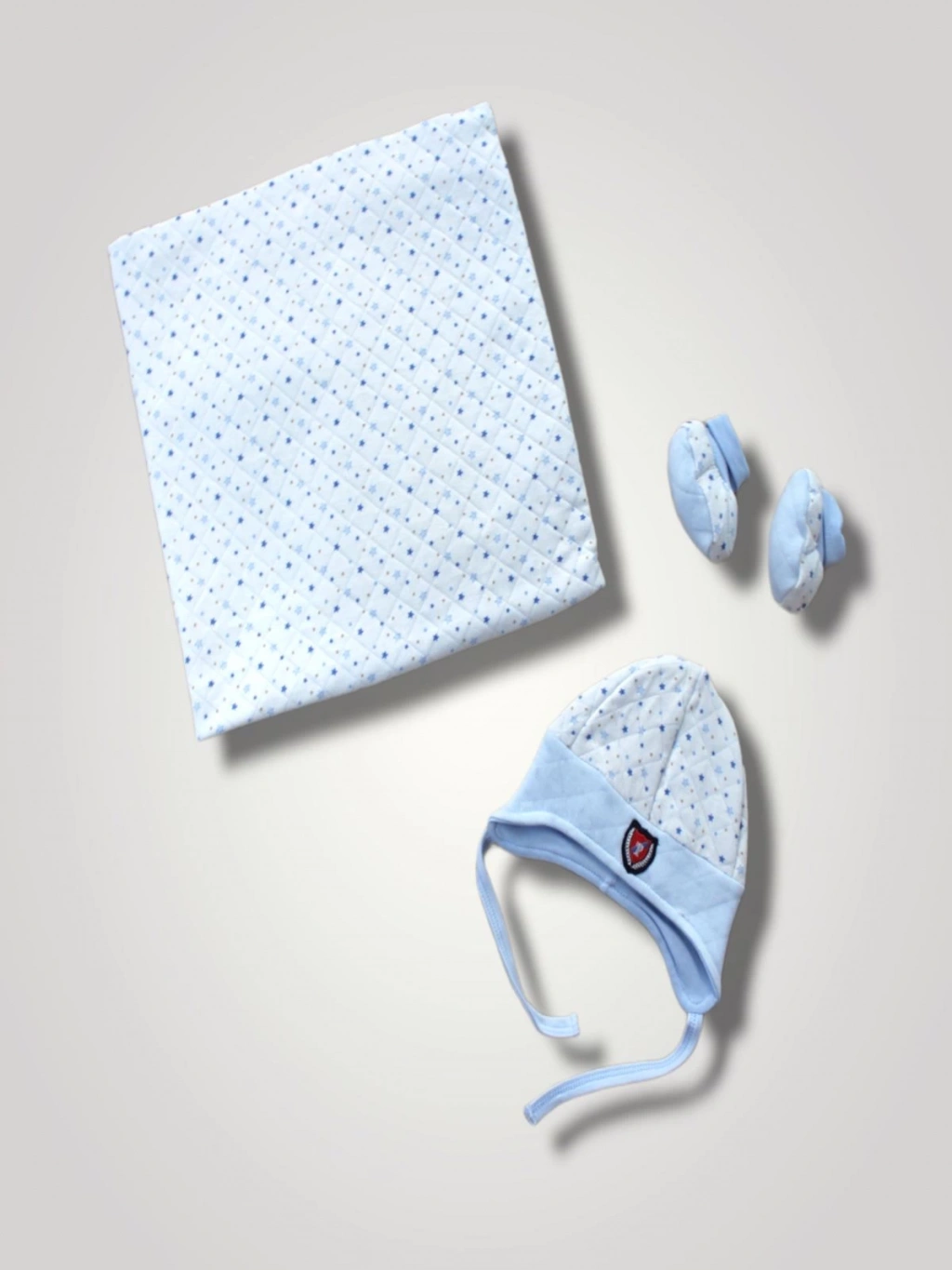 Yenidoğan Baskılı Double Face Şapka Ve Patikli 3lü Bebek Battaniye Takımı