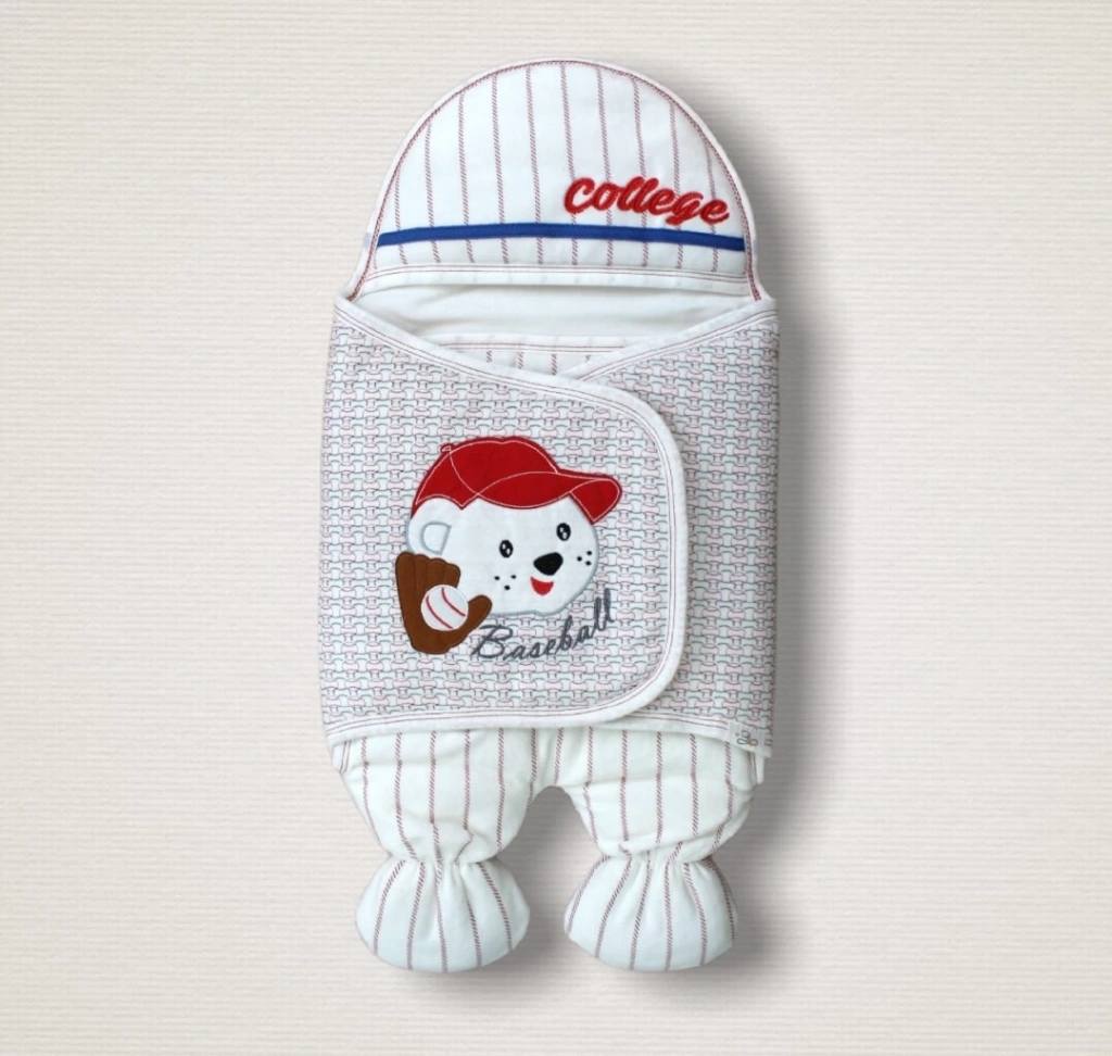 Yenidoğan Beyzbolcu Nakışlı Ayaklı Erkek Bebek Kundak