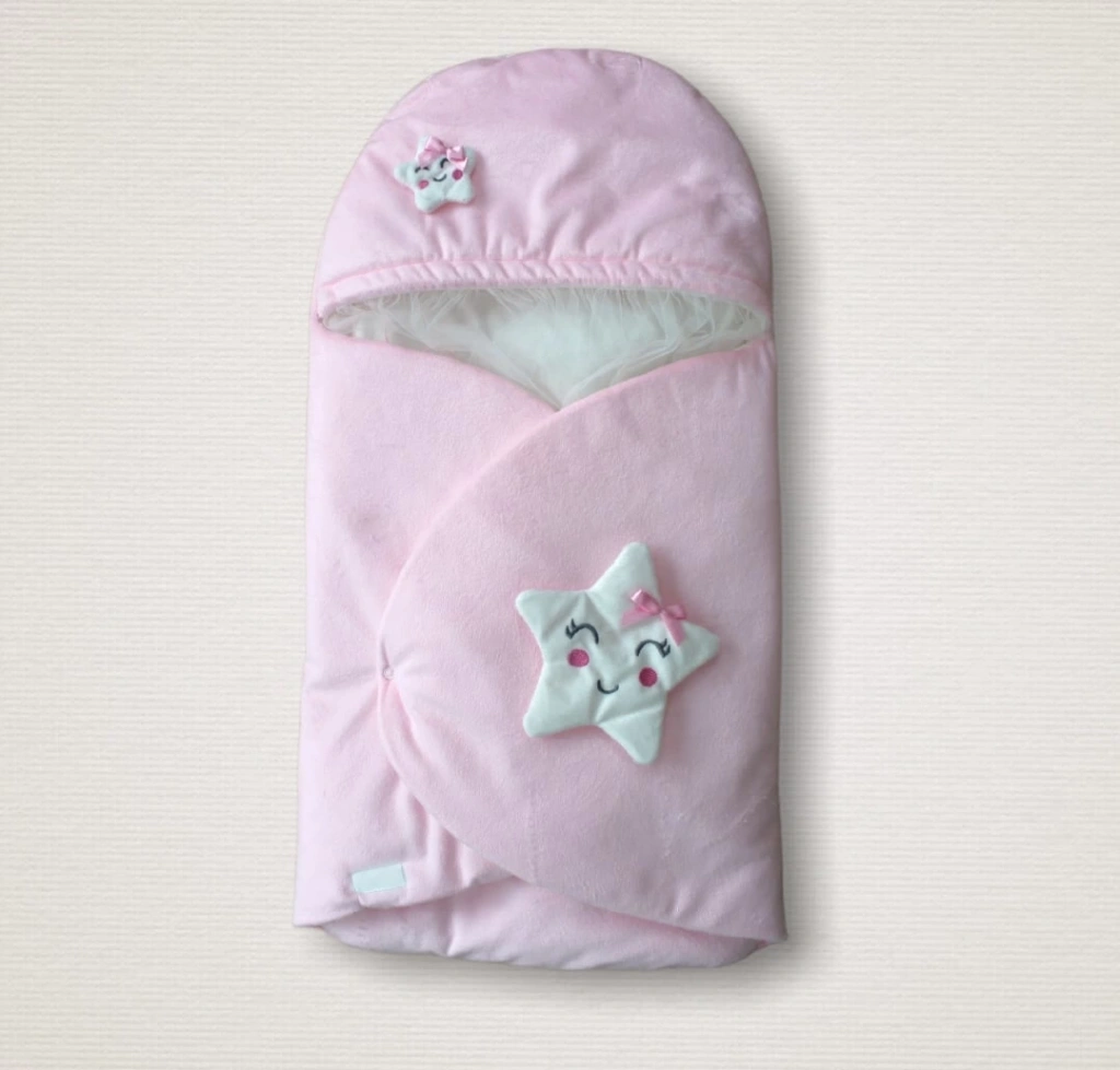 Yenidoğan Çift Yıldız Detaylı Şapkalı Duvaklı Kız Bebek Klasik Kundak Bebek Battaniyesi