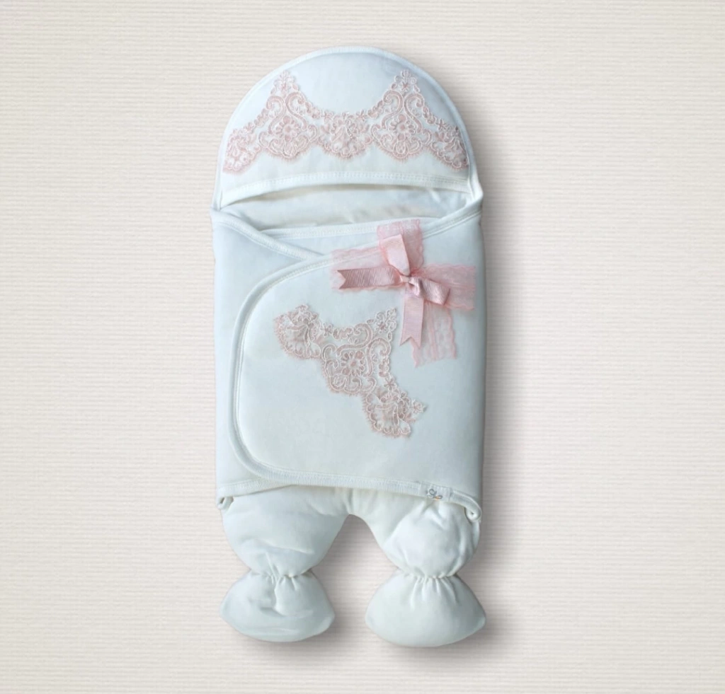 Yenidoğan Fistolu Fiyonk Kurdelalı Şapkalı Lüks Kız Erkek Bebek Ayaklı Kundak Bebek Battaniyesi