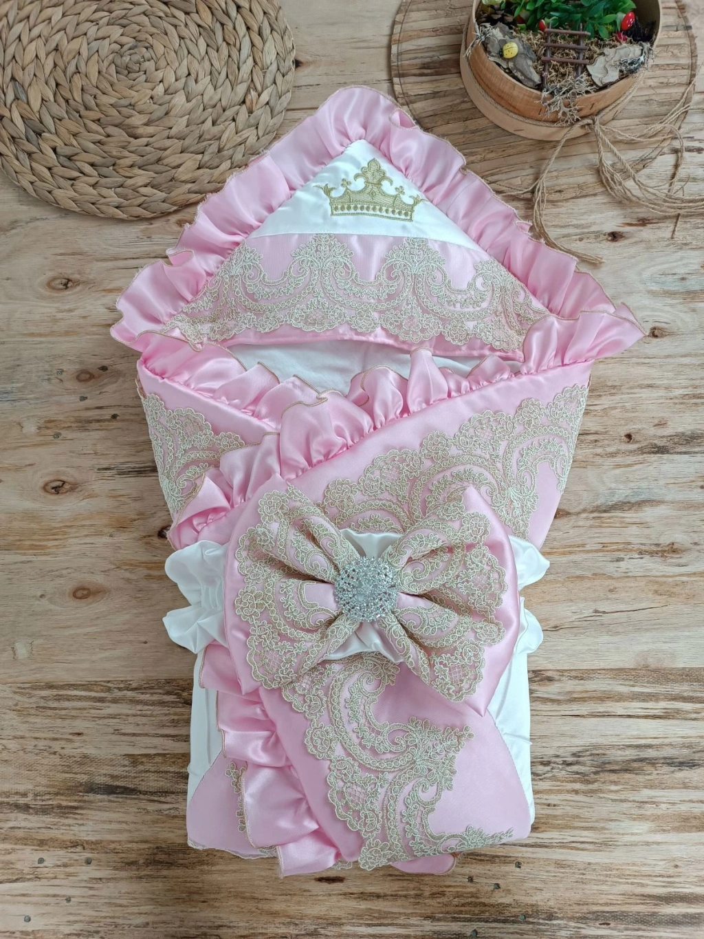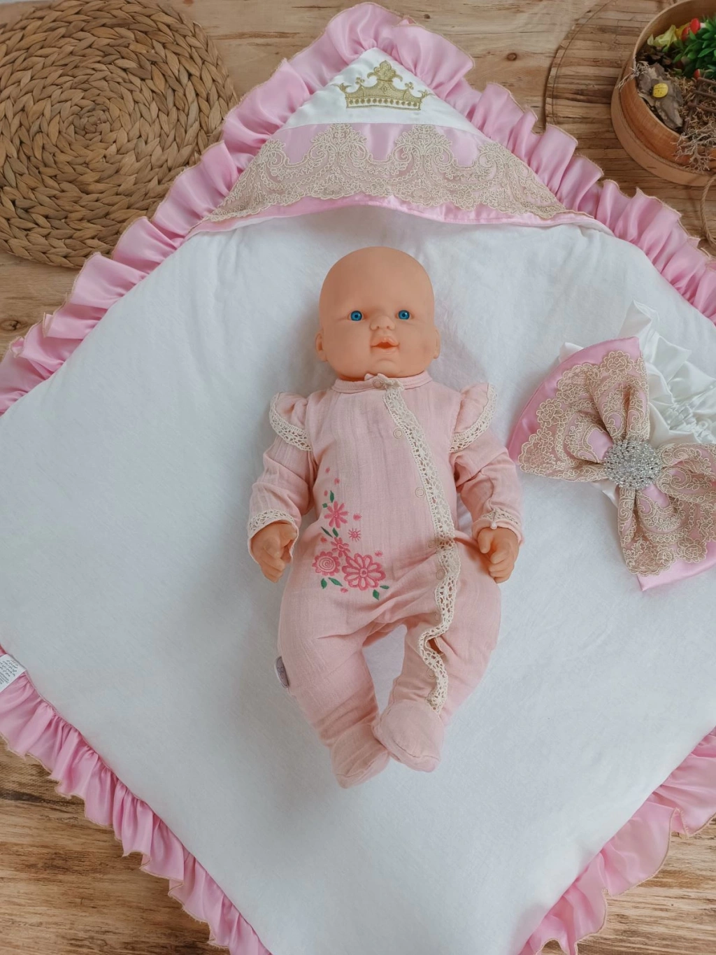 Yenidoğan Mehtap Lüks Kelebek Taç Nakışlı Bebek Battaniyesi Kundak