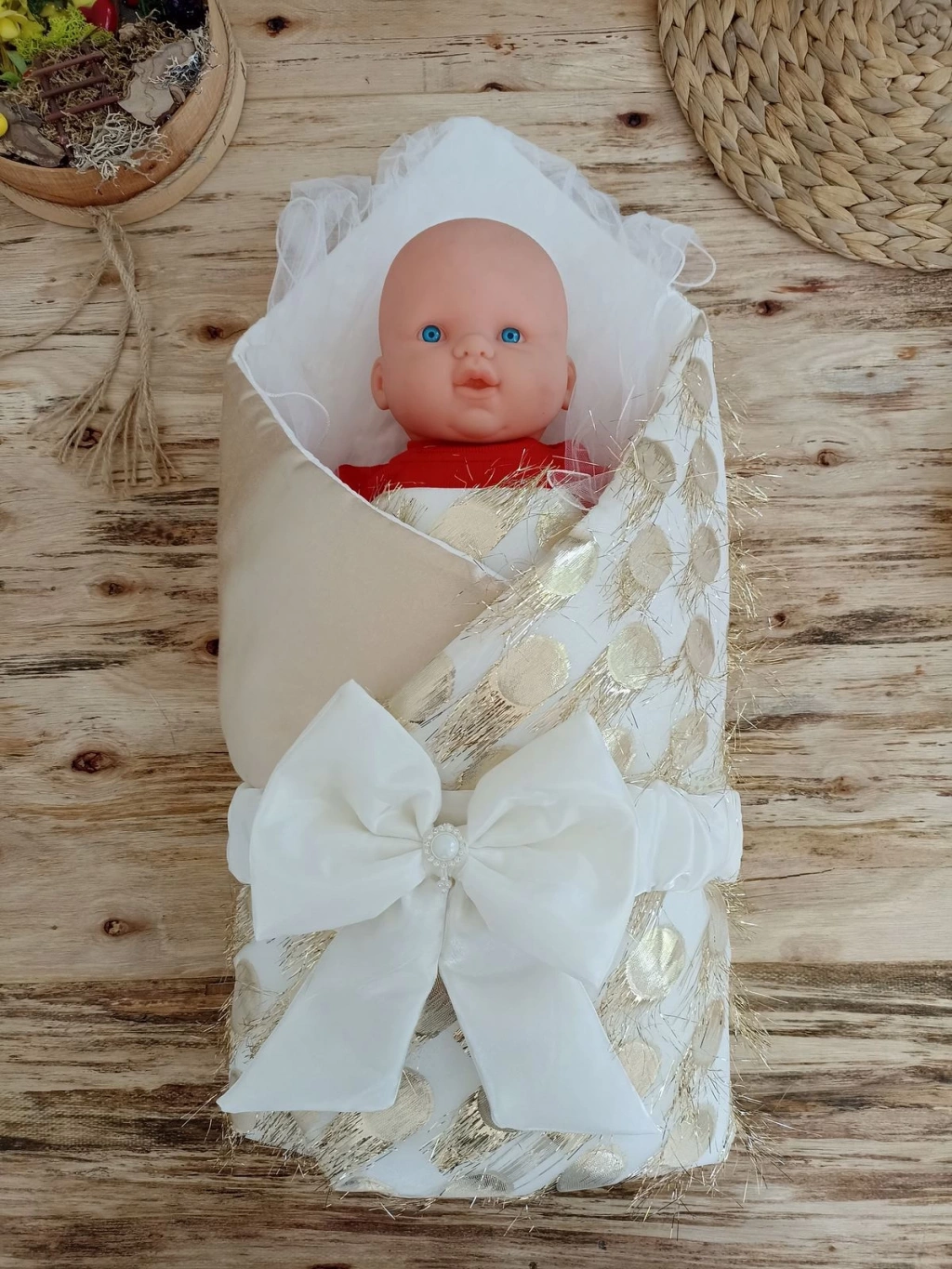 Yenidoğan Grand Lüks Kelebek Ağır Güpür İşlemeli Şapkalı Bebek Battaniyesi Kundak