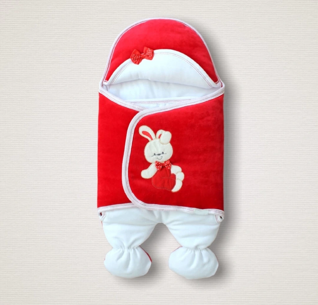 Yenidoğan Kulaklı Şapkalı Açılır Kucaklı Cırt Kapamalı Ayaklı Bebek Battaniyesi Kundak