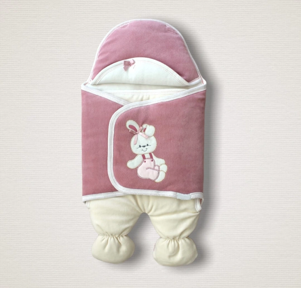Yenidoğan Kulaklı Şapkalı Açılır Kucaklı Cırt Kapamalı Ayaklı Bebek Battaniyesi Kundak