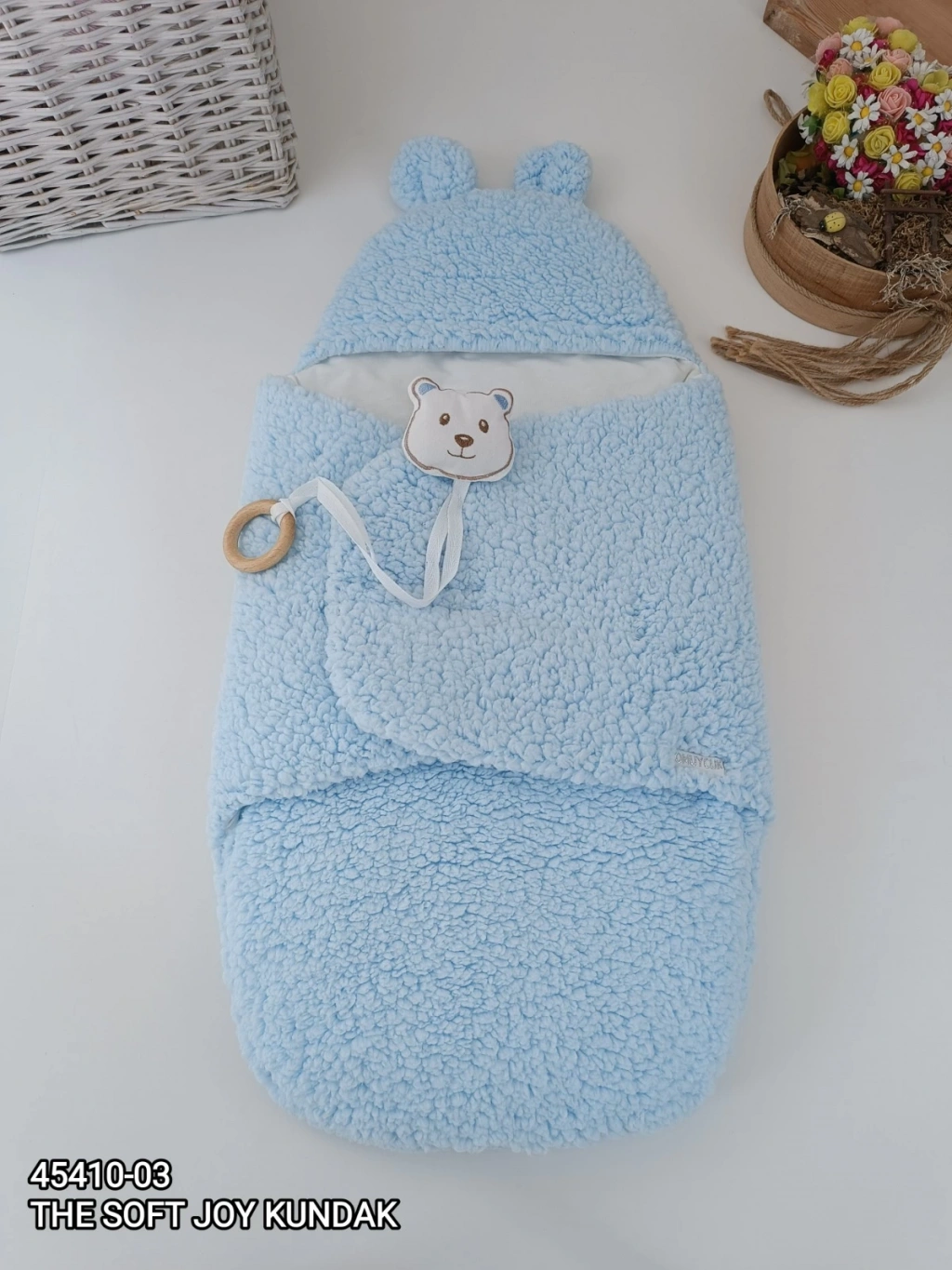 Yenidoğan Kulaklı Şapkalı Açılır Kucaklı Cırt Kapamalı Bebek Battaniyesi Kundak